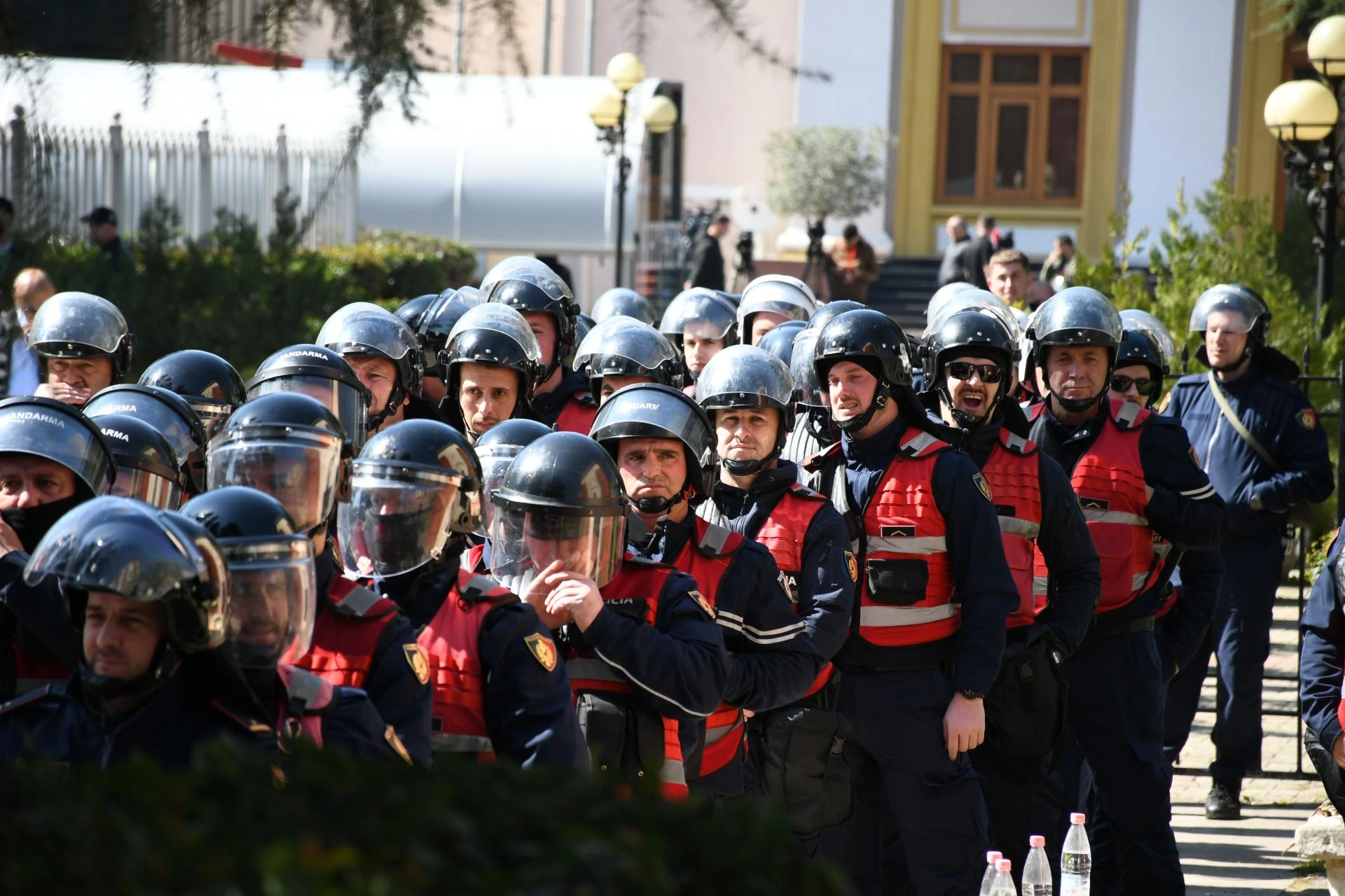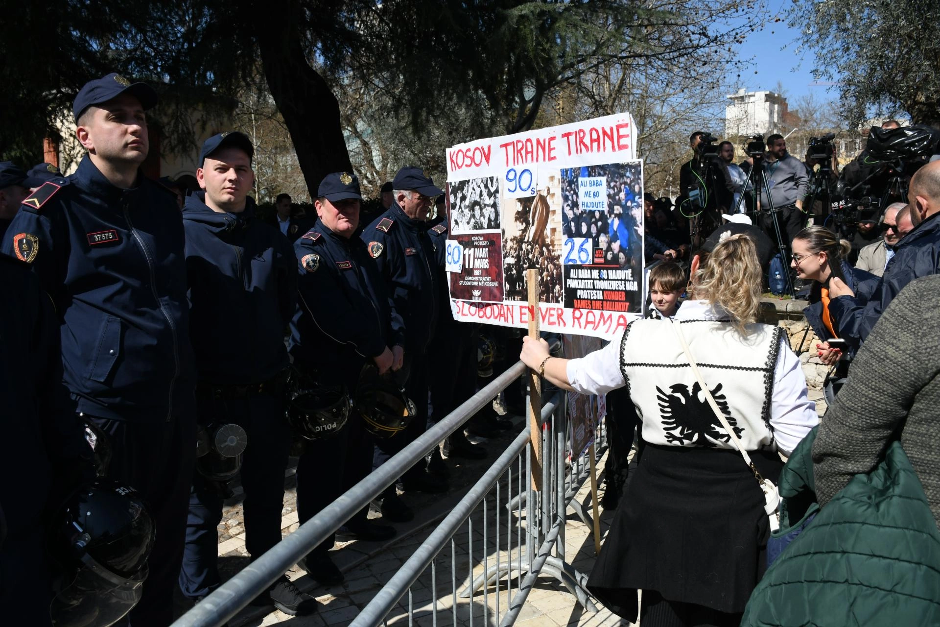 Olaysız sona eren gösteride yüzlerce polis görev aldı, Tiran'da birçok yol trafiğe kapatıldı.