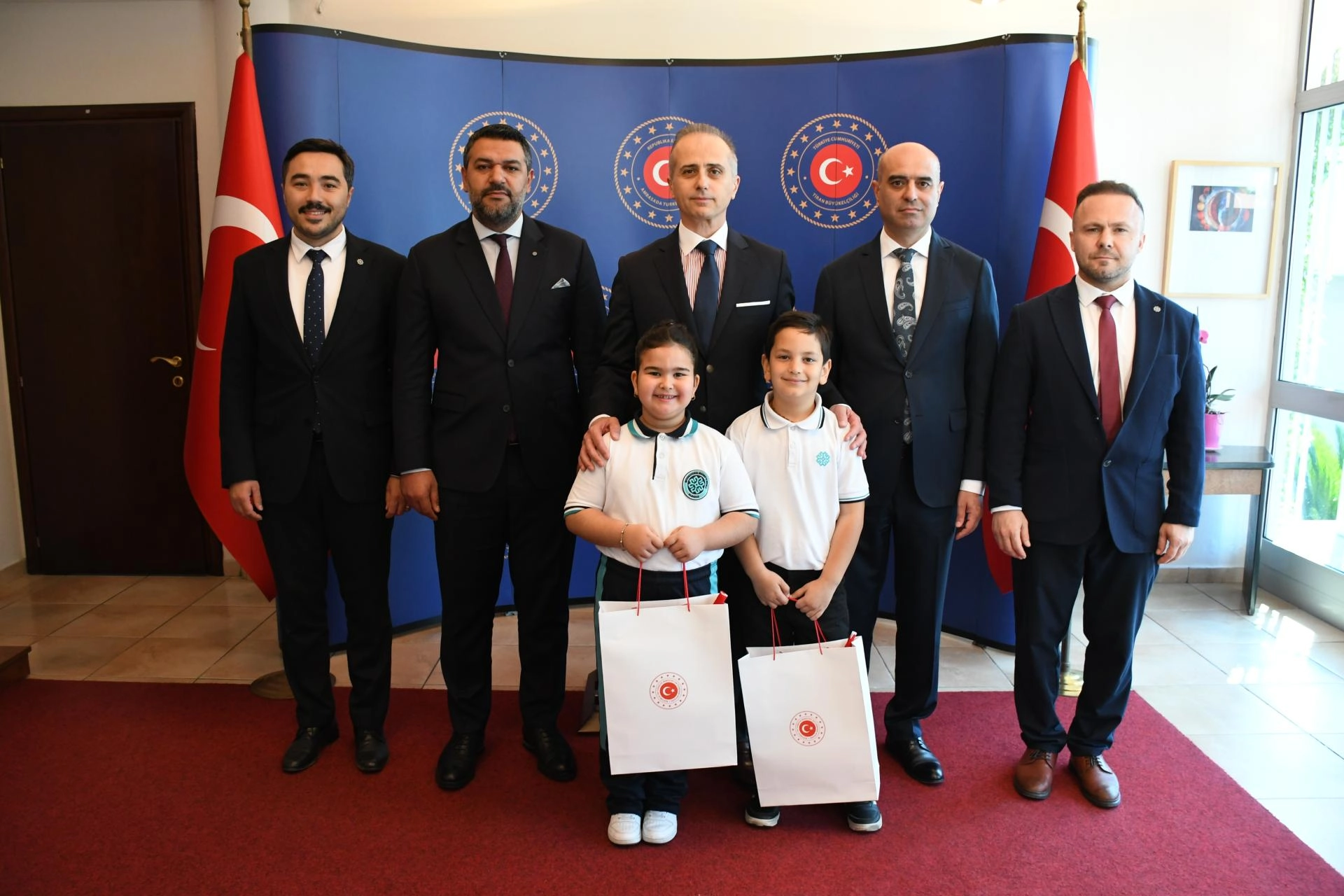 Öte yandan, Büyükelçi Erciyes, 23 Nisan Ulusal Egemenlik ve Çocuk Bayramı kapsamında TMV Okulları öğrencilerini, Büyükelçilik binasında ağırladı.