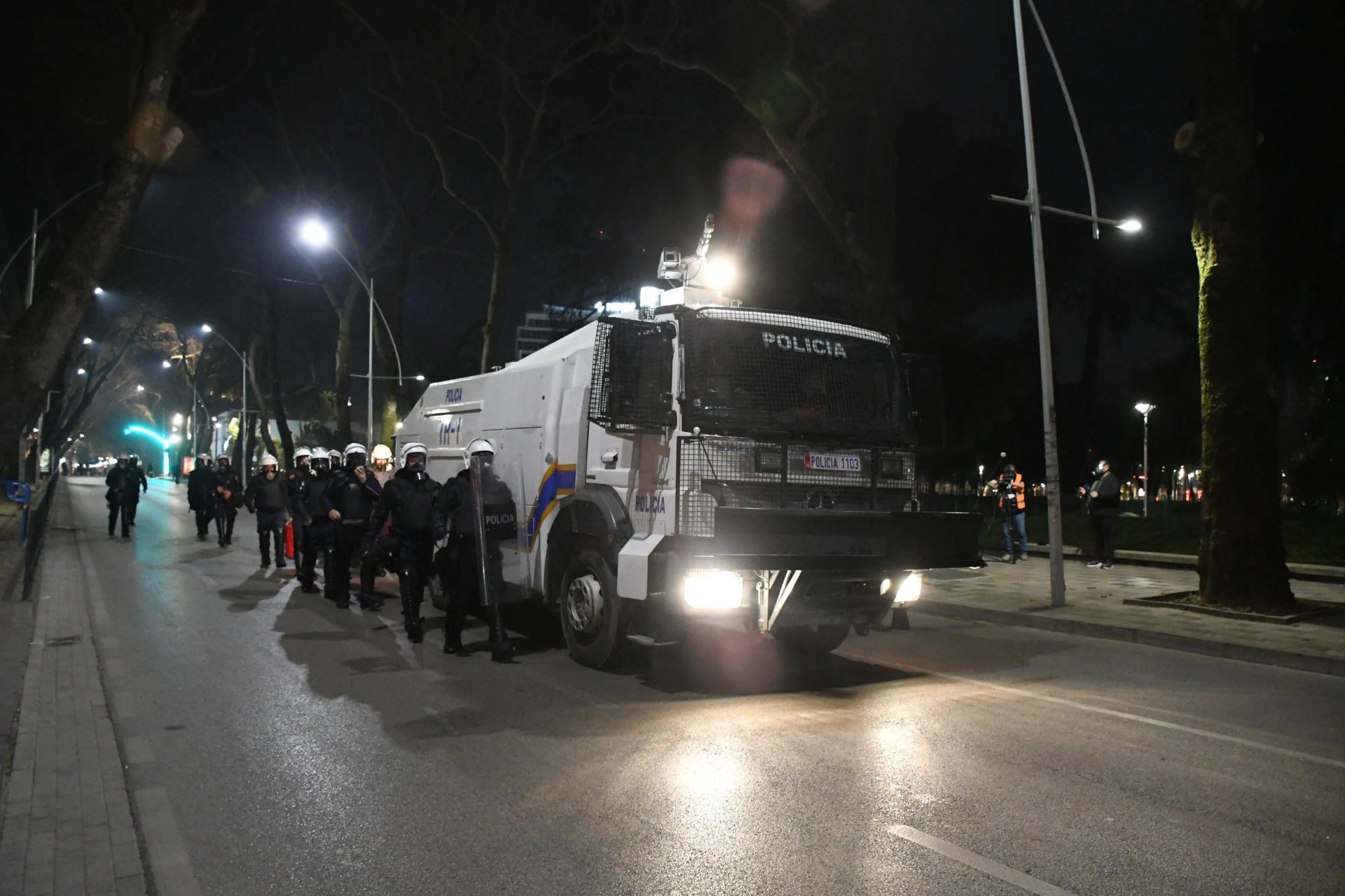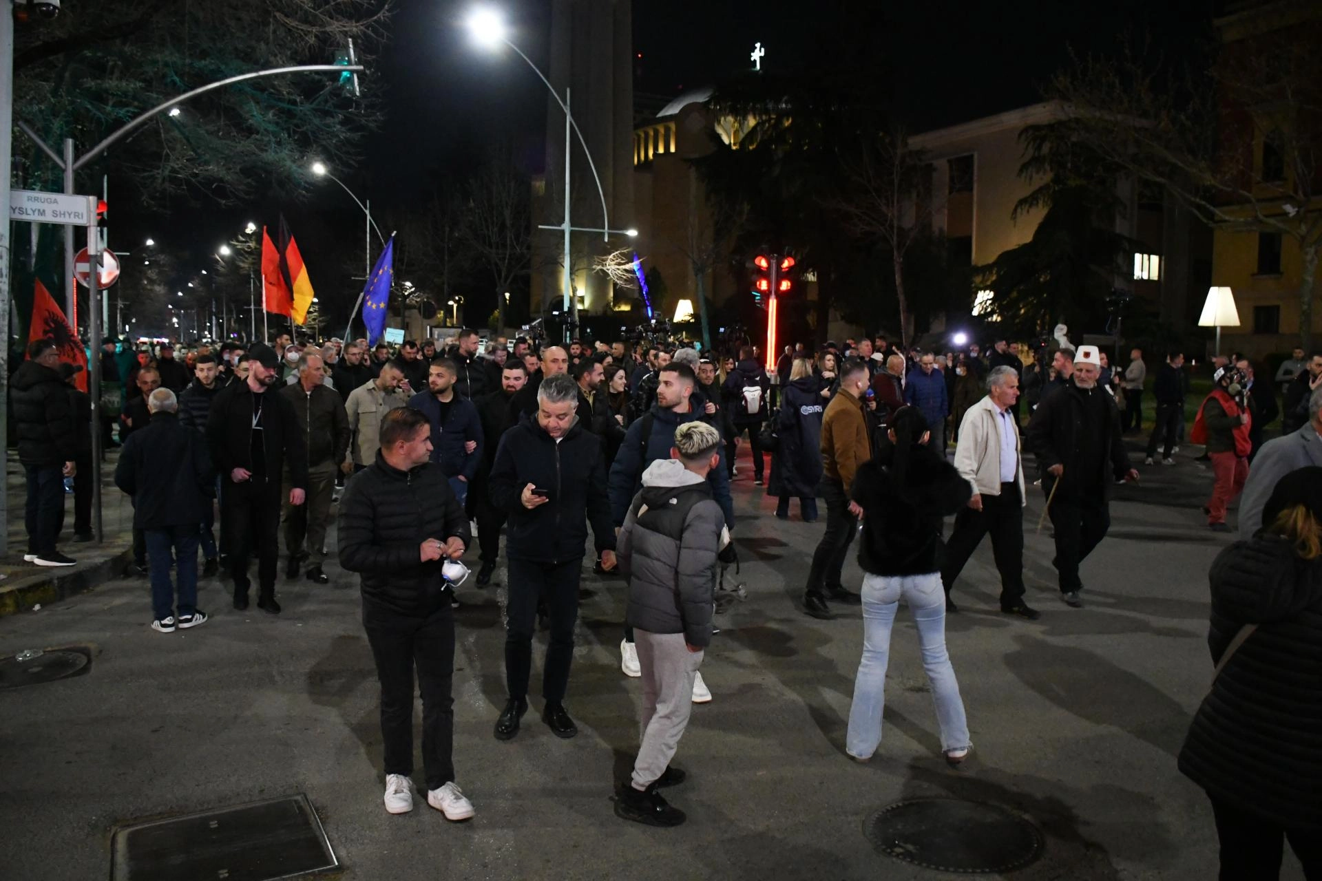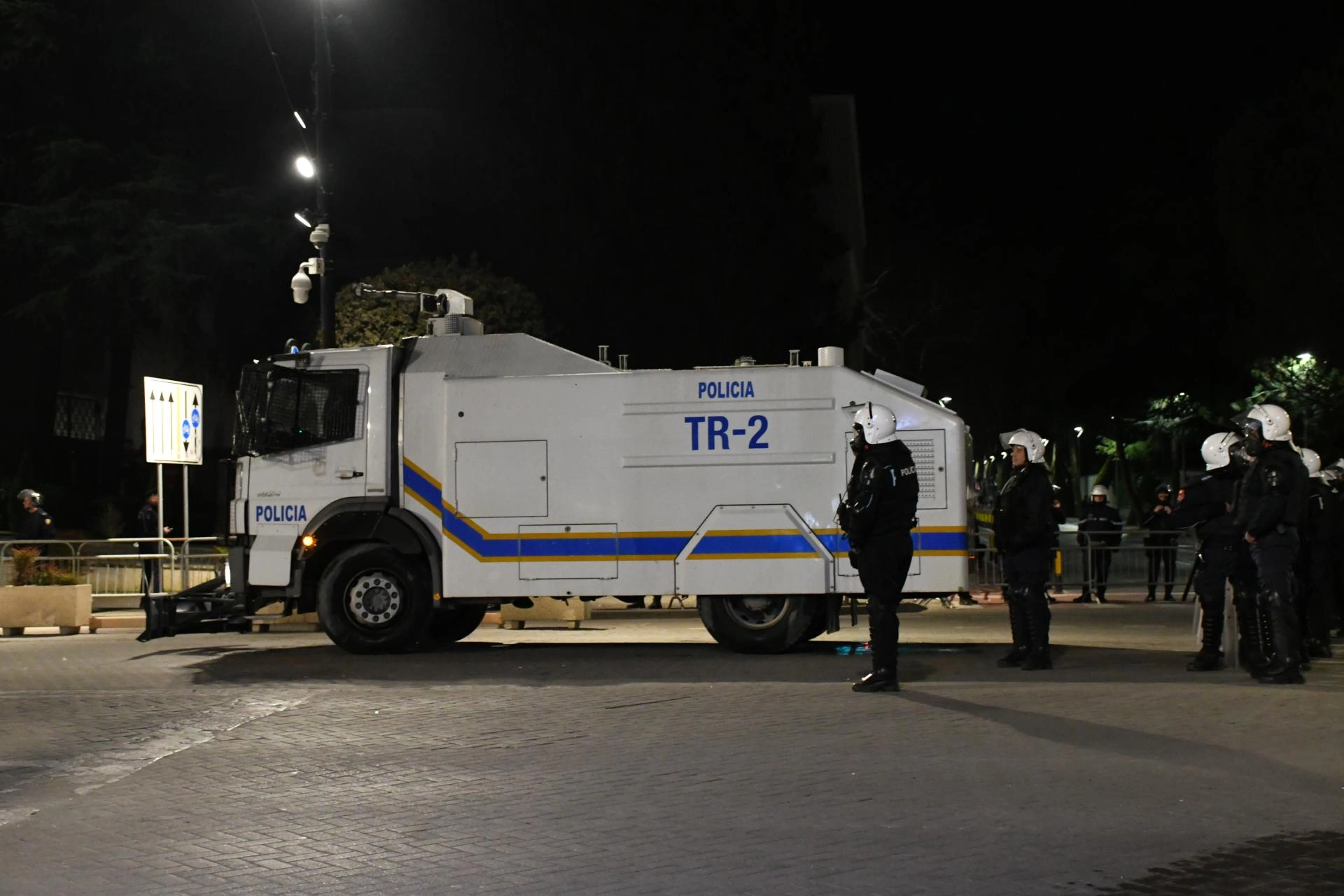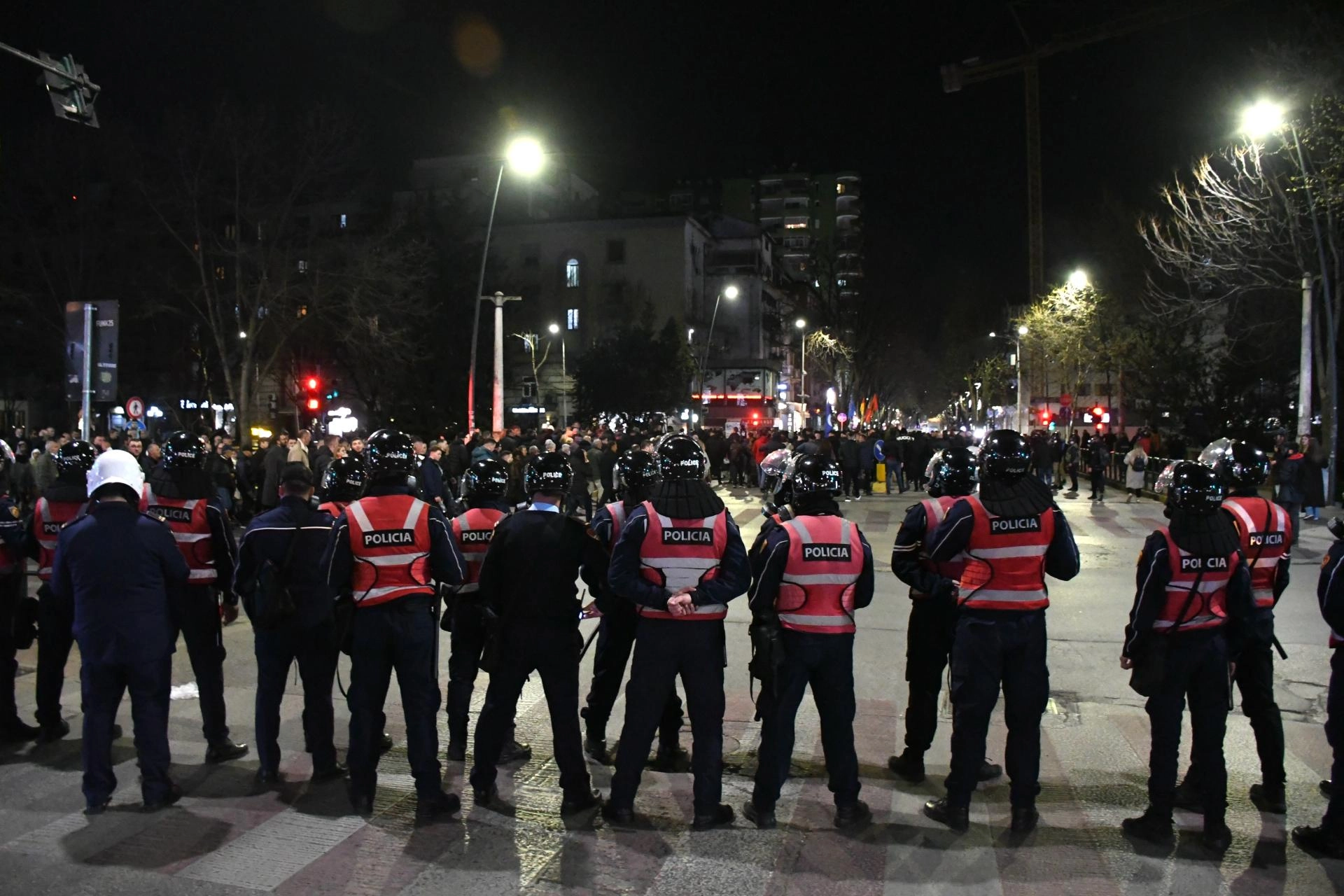 Yüzlerce polisin görevlendirildiği gösteri sırasında Tiran'da birçok yol trafiğe kapatıldı.