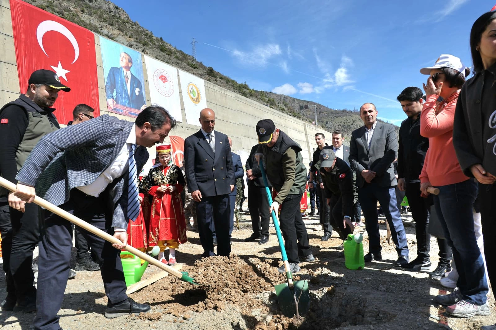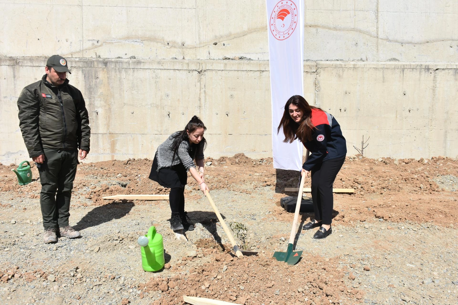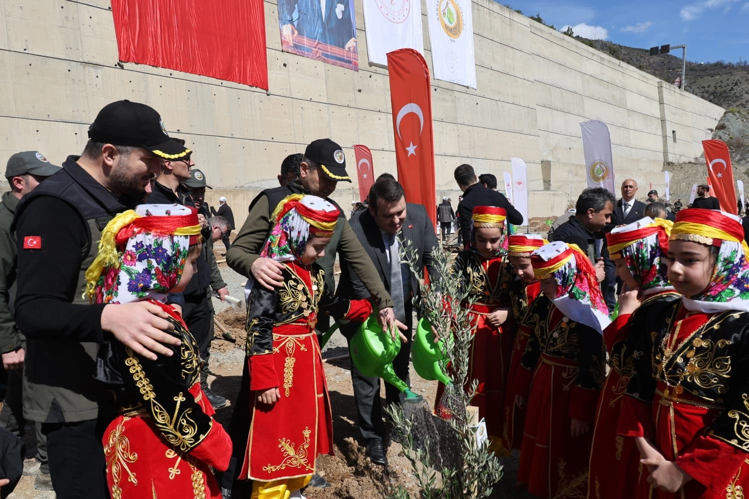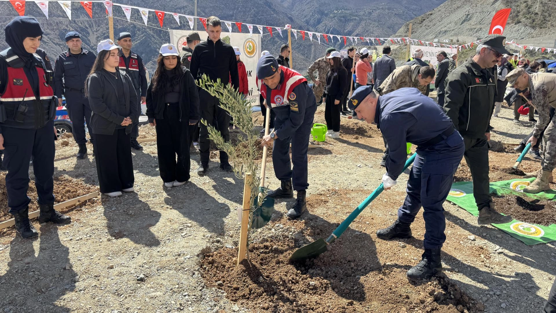 Konuşmaların ardından Vali Ergün, davetliler ve öğrenciler, 200 zeytin fidanını toprakla buluşturdu.