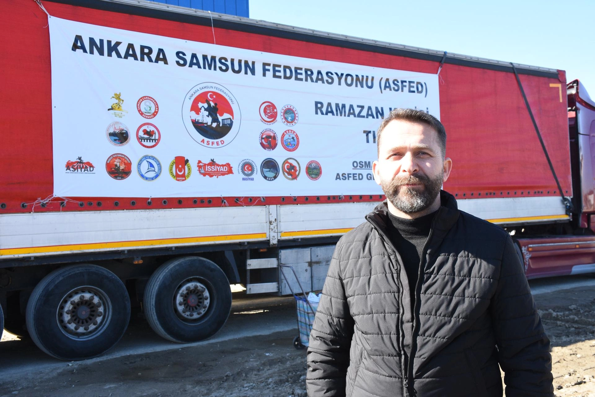Ankara'da hazırlanan 4 bin ramazan kolisi, tırla Samsun'un Canik ilçesindeki ASFED Samsun Şubesi'ne getirildi.