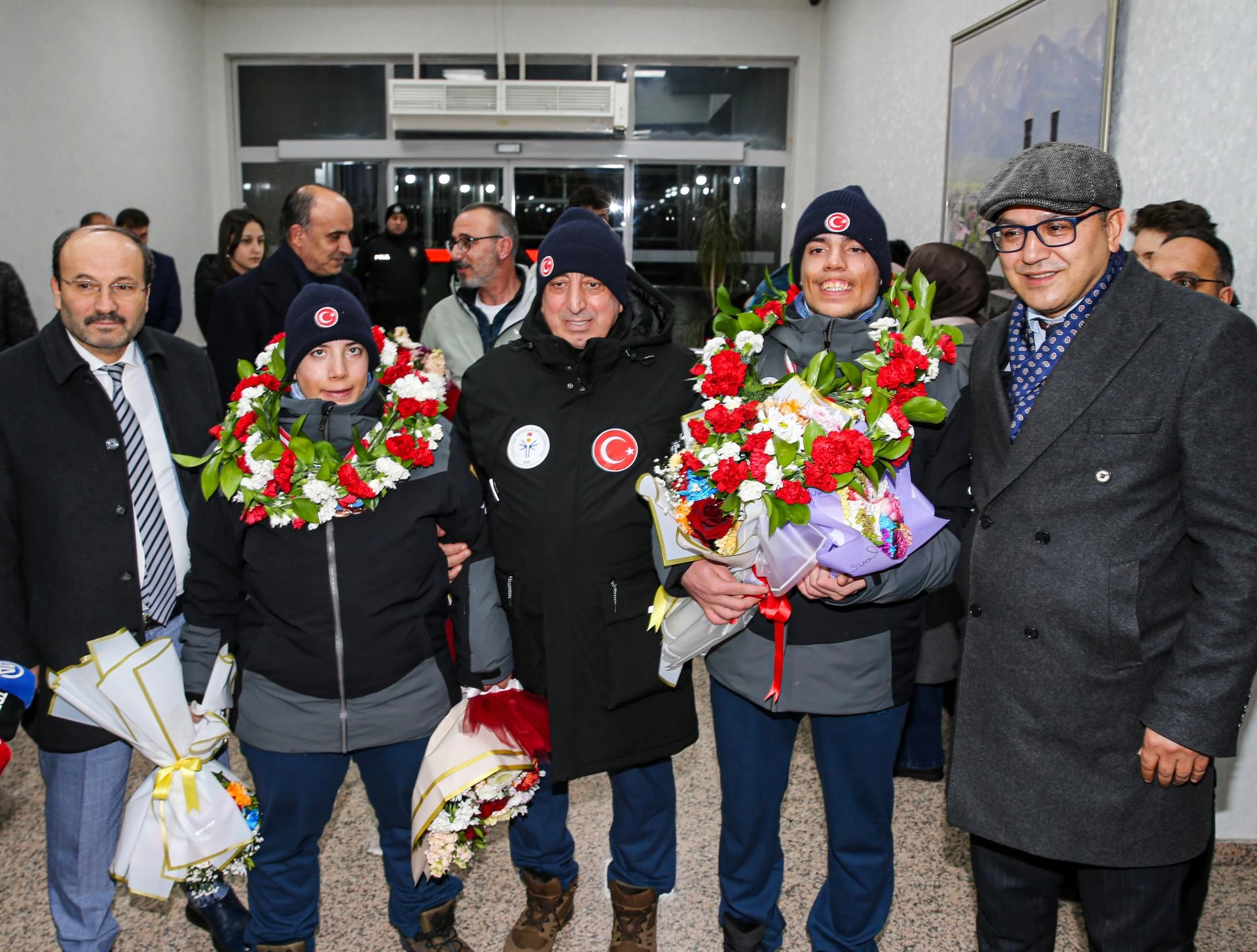 Erzurum'a dönem ikiz kardeşler, Erzurum Havalimanı'nda Erzurum Cumhuriyet Başsavcısı Adem Aydemir, Erzurum Teknik Üniversitesi (ETÜ) Rektörü Prof. Dr. Bülent Çakmak, Gençlik ve Spor İl Müdürü Levent Çakmur, aile üyeleri ve yakınları tarafından çiçeklerle karşılandı.