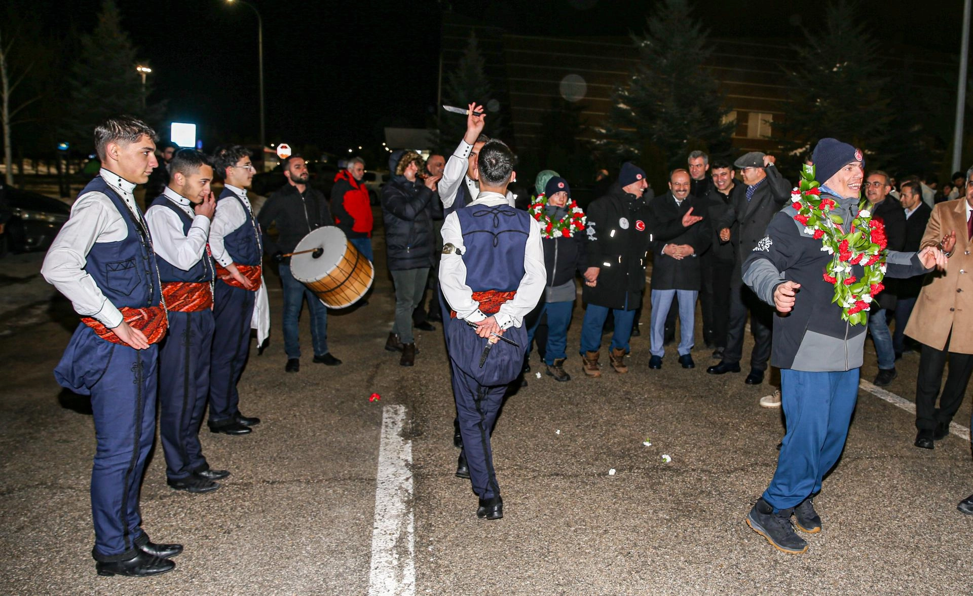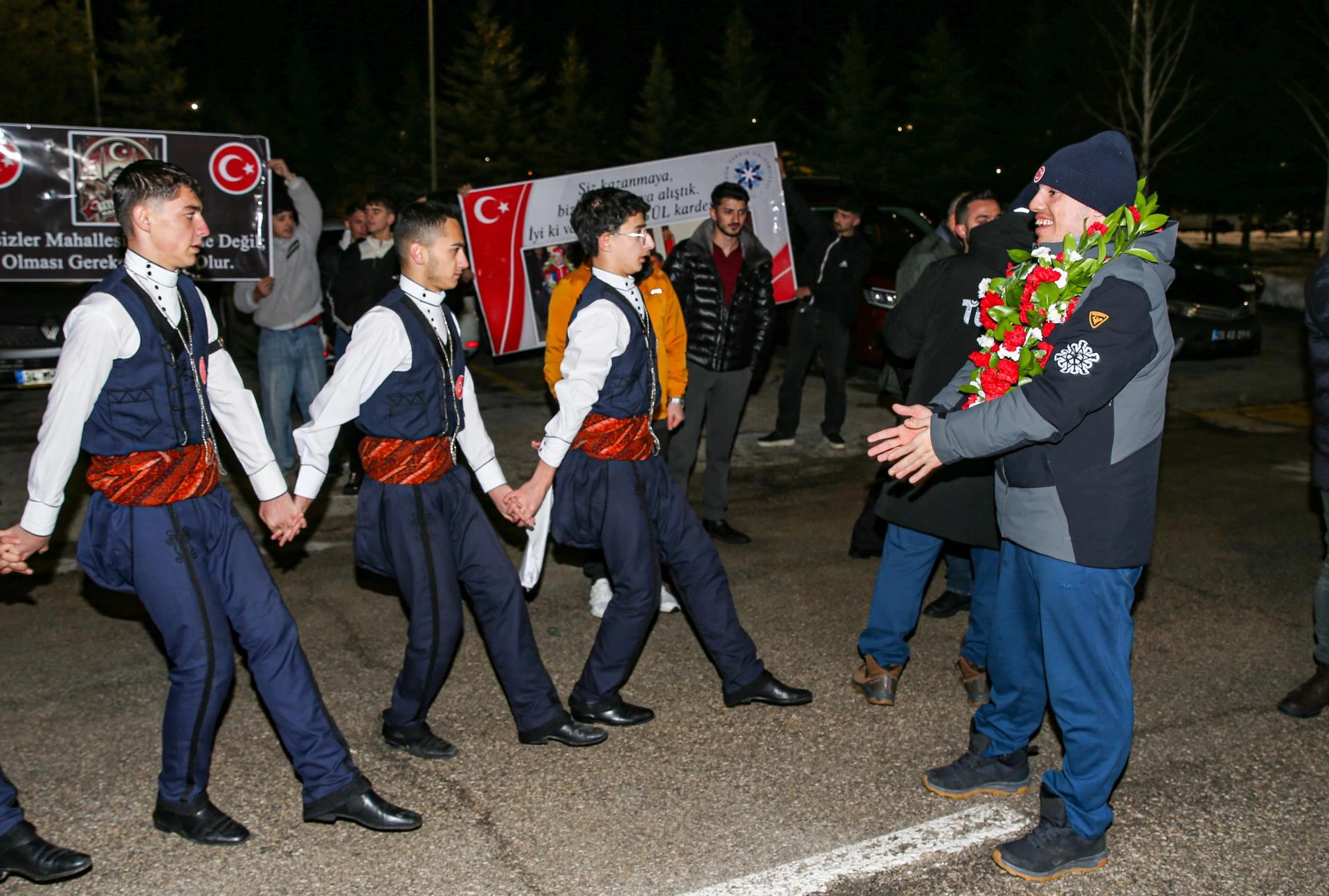 Karşılamada, Erzurum Büyükşehir Belediyesi halk oyunları ekibi de gösteri yaptı.