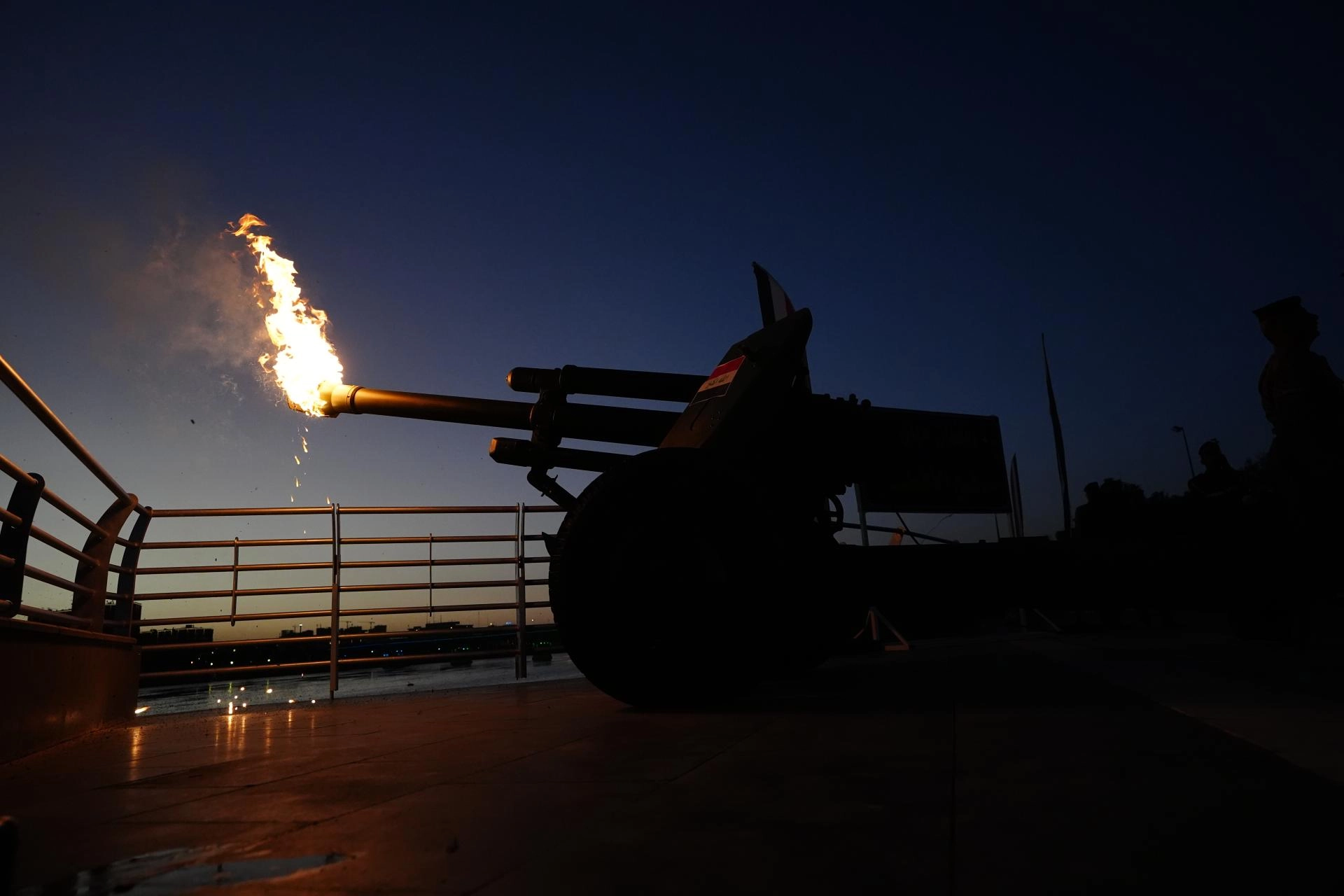 Ramazanın manevi atmosferinin hakim olduğu Bağdat'ta halk, Dicle Nehri kıyısına yerleştirilen toptan yapılan atışı coşkuyla karşıladı.