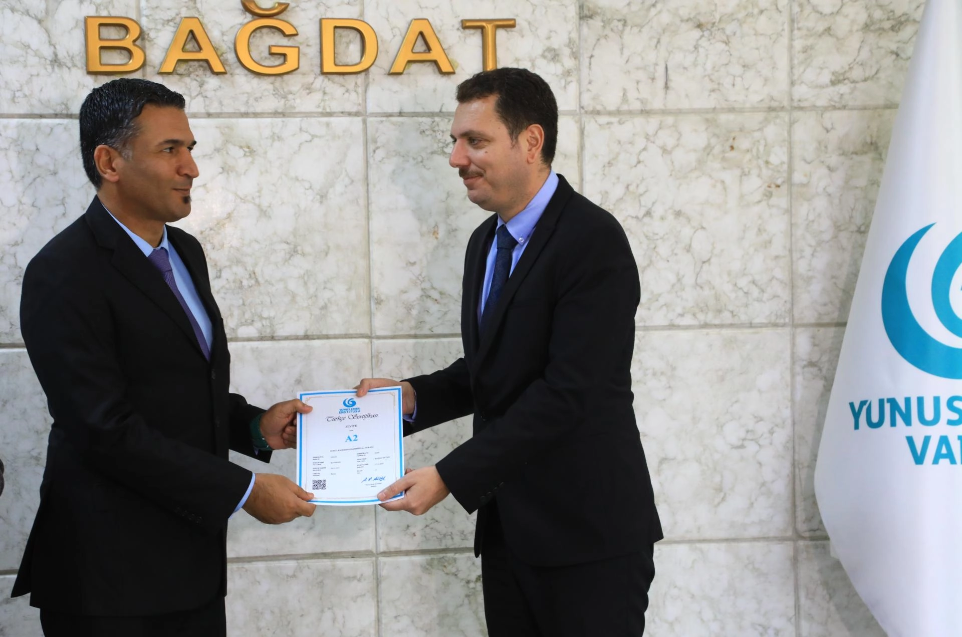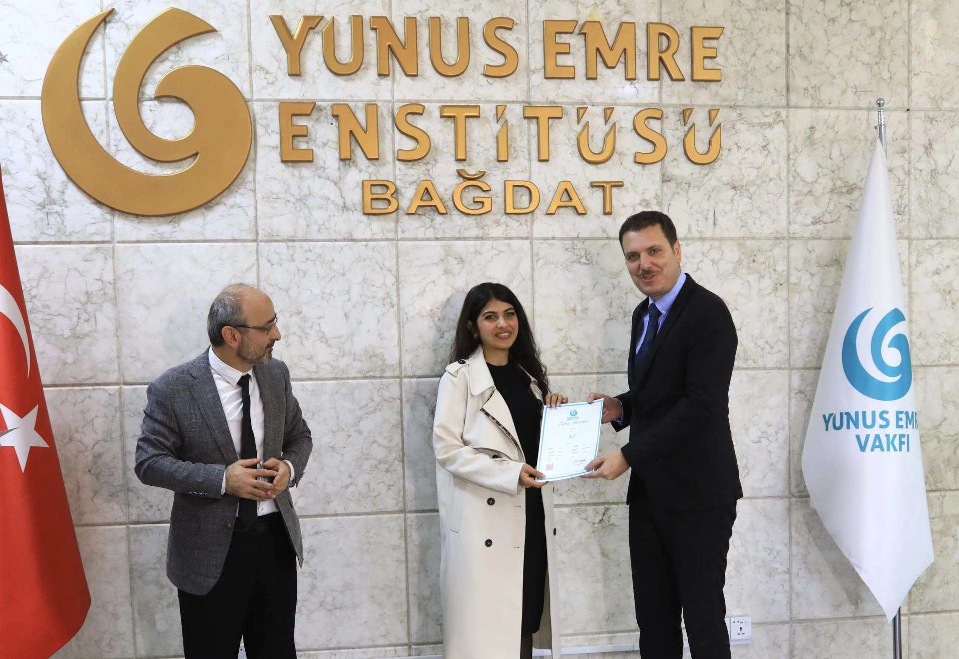 BAĞDAT - Irak'ın başkenti Bağdat'taki Yunus Emre Türk Kültür Merkezi tarafından düzenlenen Türkçe dil kurslarını başarıyla tamamlayan kursiyerler için sertifika töreni yapıldı.
