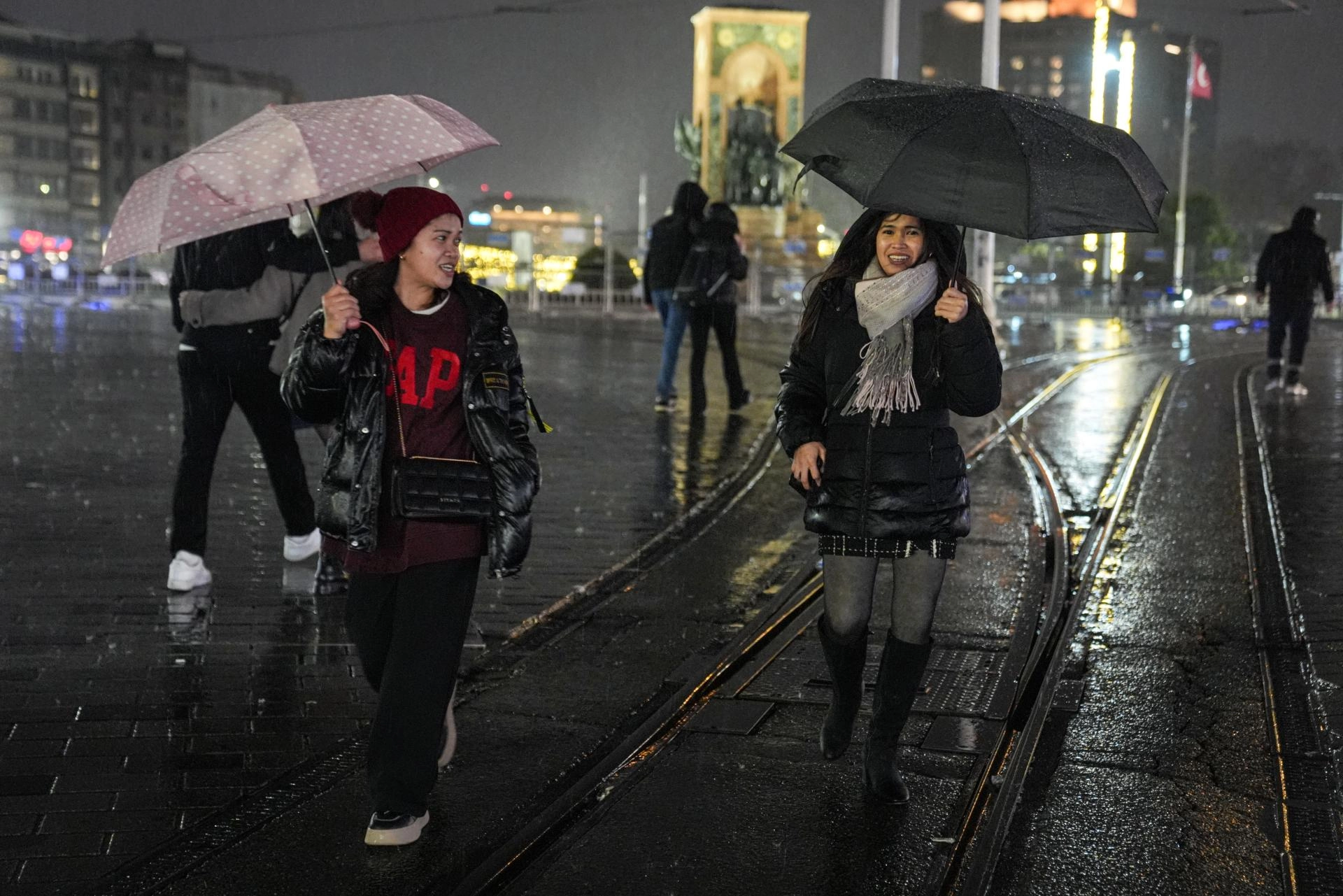 İSTANBUL (AA) - Bahçelievler'de kuvvetli yağış nedeniyle çökme meydana gelen yolda oluşan çukura bir aracın tekerlekleri saplandı.