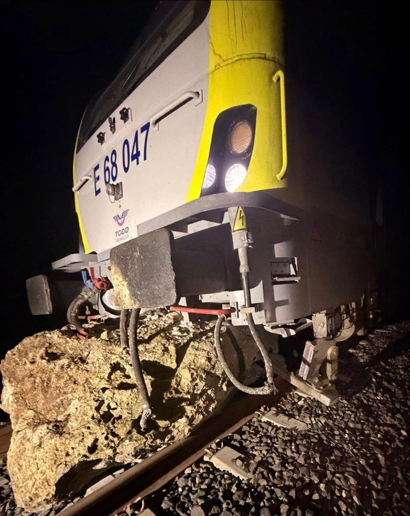 Balıkesir'de yolcu treninin lokomotifi, düşen kaya parçası nedeniyle raydan çıktı