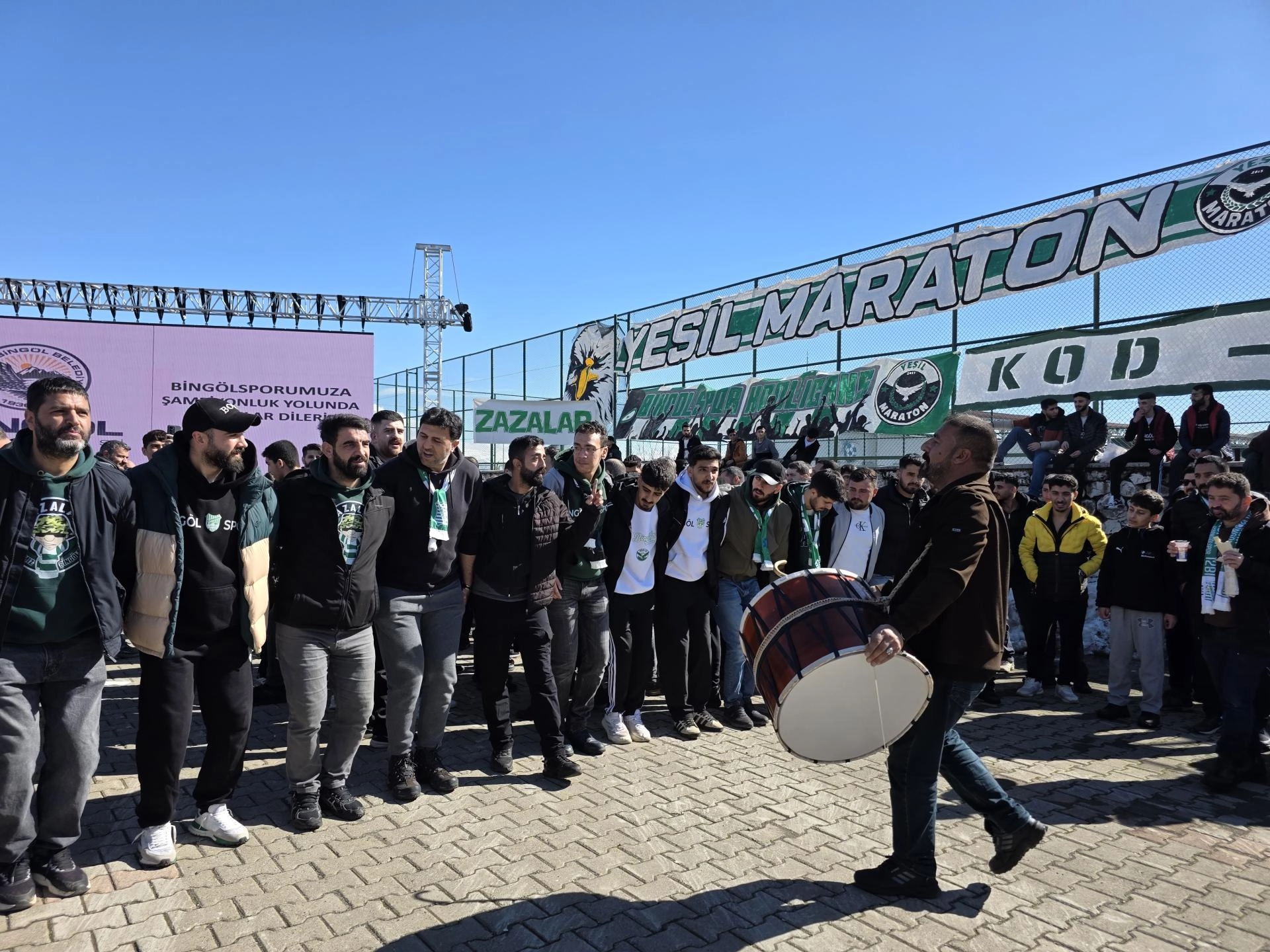 Bingöl Şehir Stadyumu'nda oynanan müsabaka öncesi stat çevresini dolduran taraftarlar, takımlarına davul zurna eşliğinde tezahüratlarda bulundu.