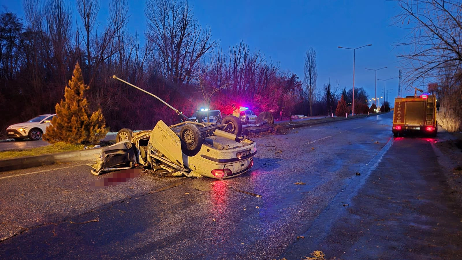 Çarpmanın etkisiyle takla atan araç devrildi. İhbar üzerine bölgeye 112 Acil Sağlık, polis ve itfaiye ekipleri sevk edildi.