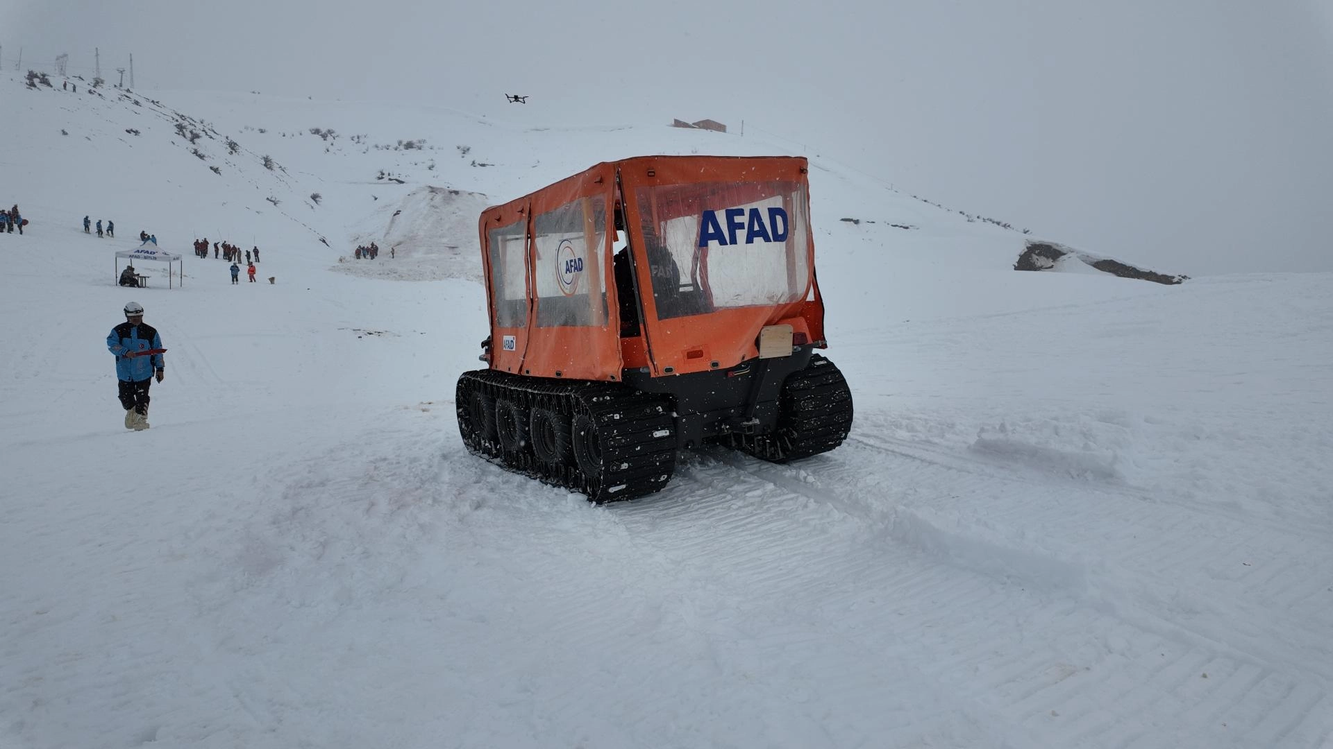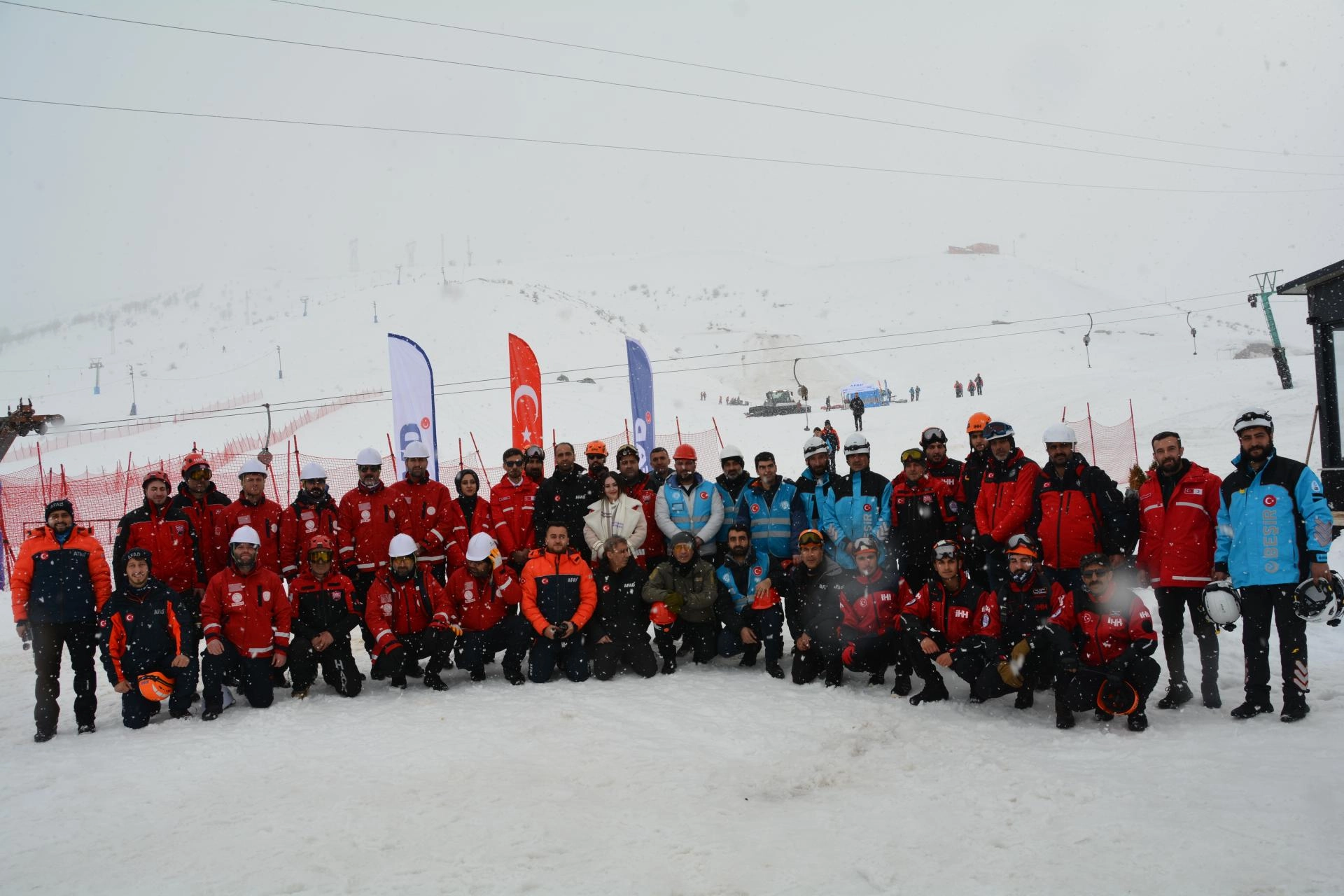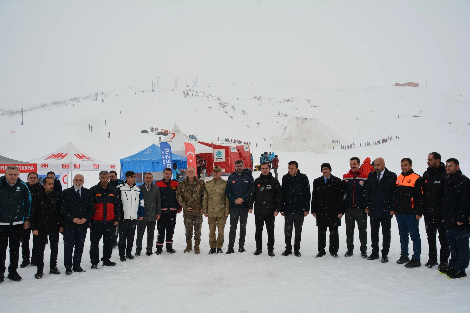 El-Aman Hanı Kayak Merkezi'nde gerçekleştirilen tatbikata 228 arama kurtarma personeli ile 53 araç katıldı.