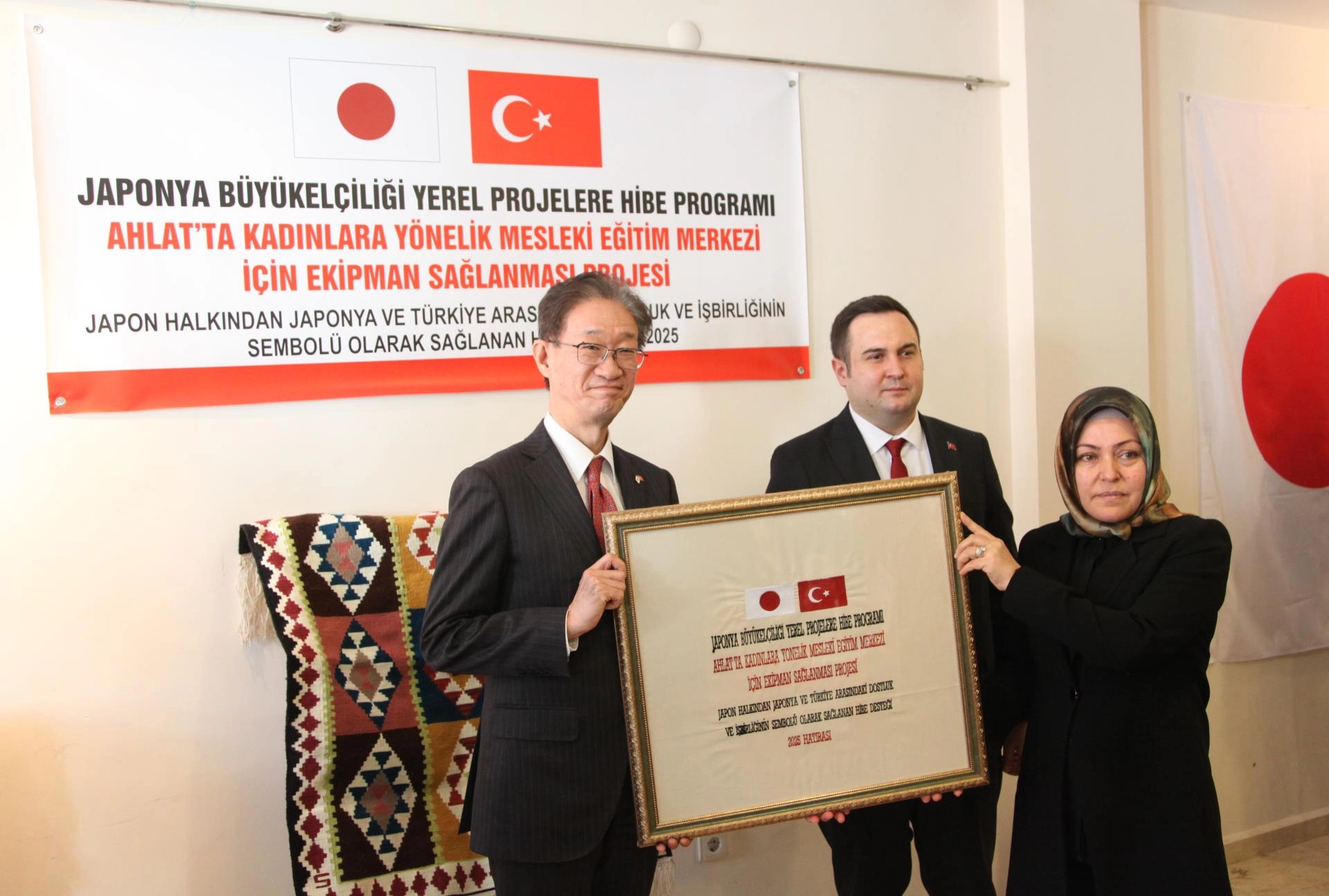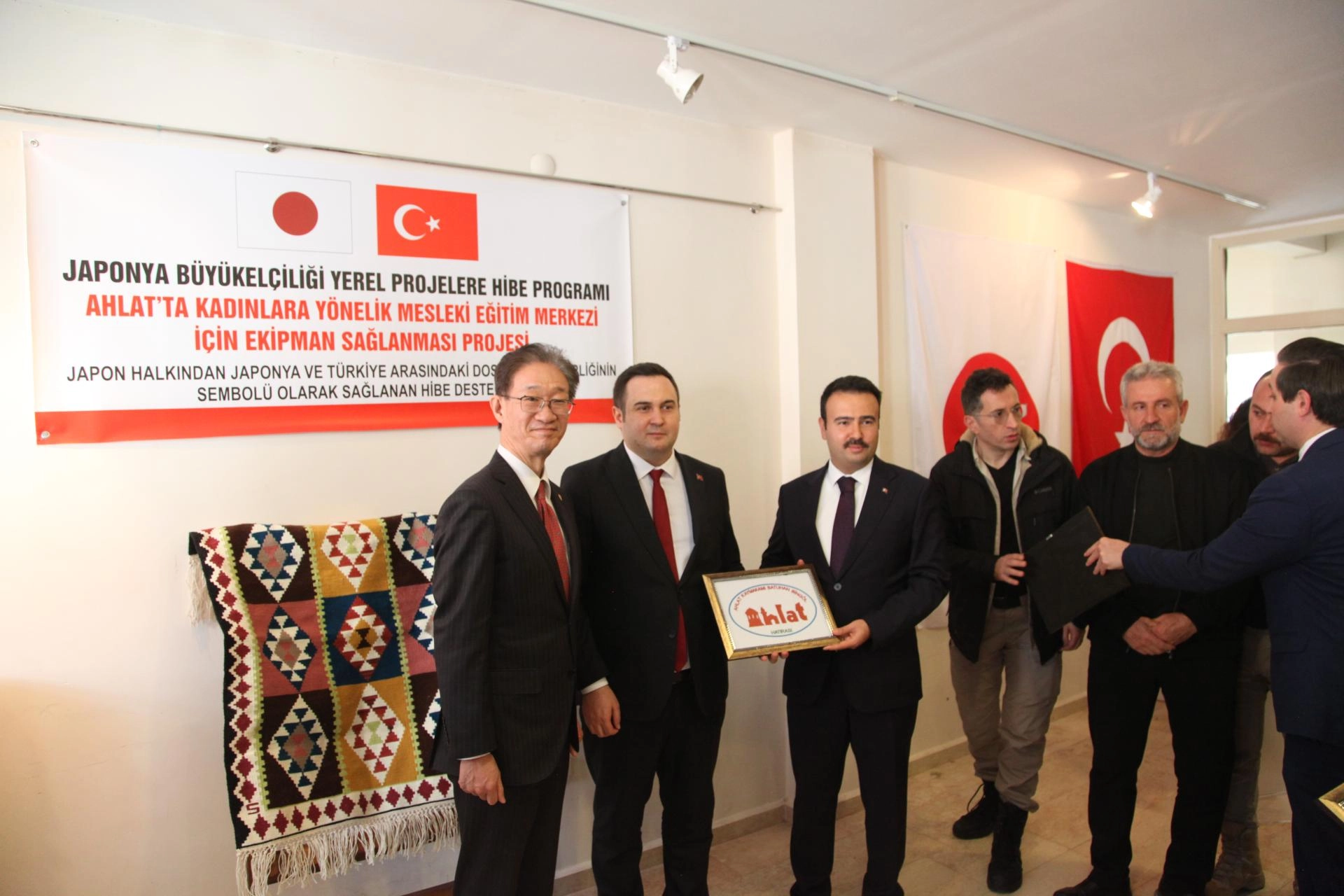 Ahlat Kaymakamlığı Sosyal Yardımlaşma ve Dayanışma Vakfı tarafından hazırlanan "Ahlat'ta Kadınlara Yönelik Mesleki Eğitim Merkezi için Ekipman Sağlanması" projesi, Japonya Büyükelçiliği'nin Yerel Projelere Hibe Programı kapsamında desteklendi.