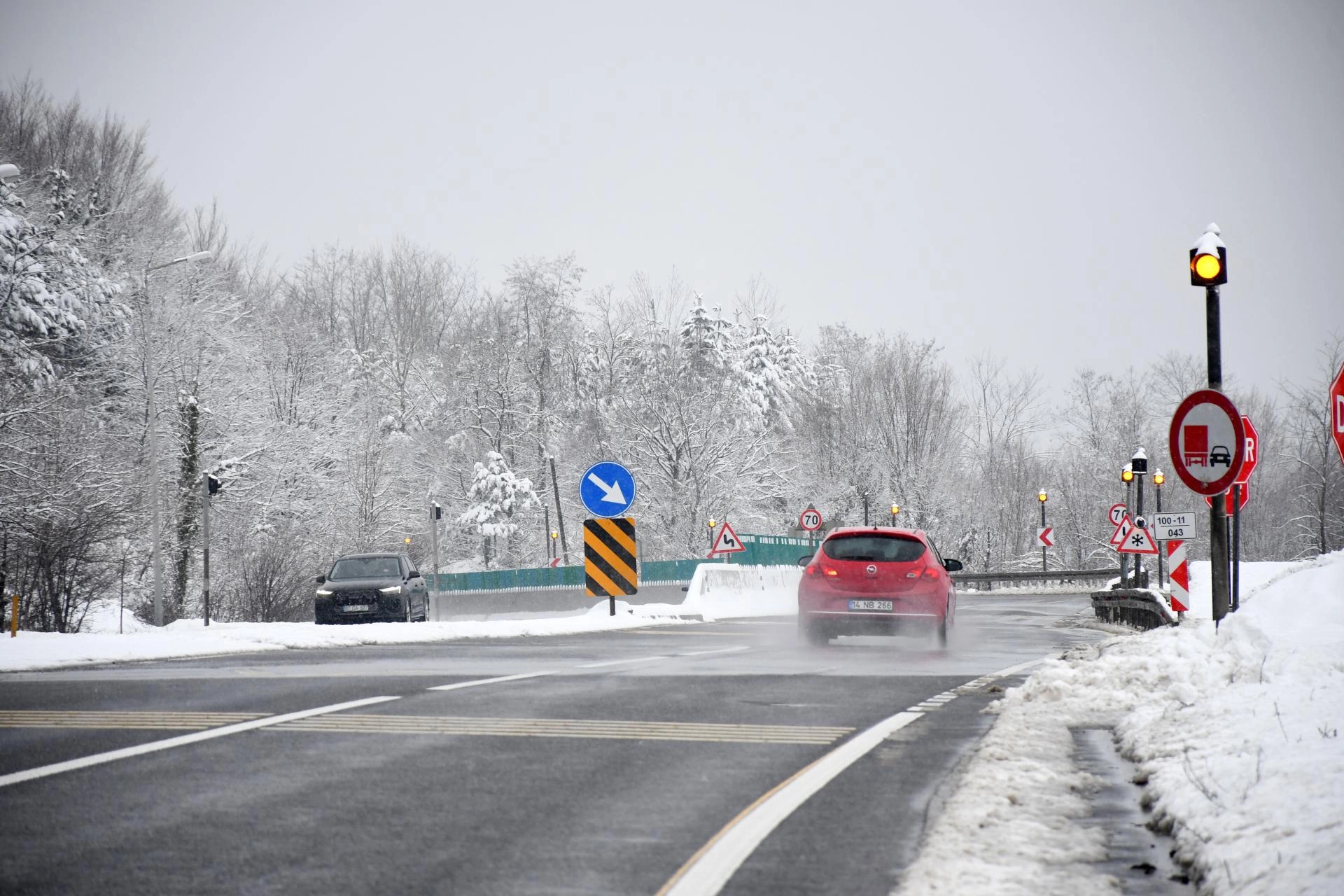 Kar yağışı kara yolunun Dağkent, Yumrukaya, Abant kavşağı, Bakacak, Seymenler ve Karanlıkdere mevkisinde etkili oluyor.