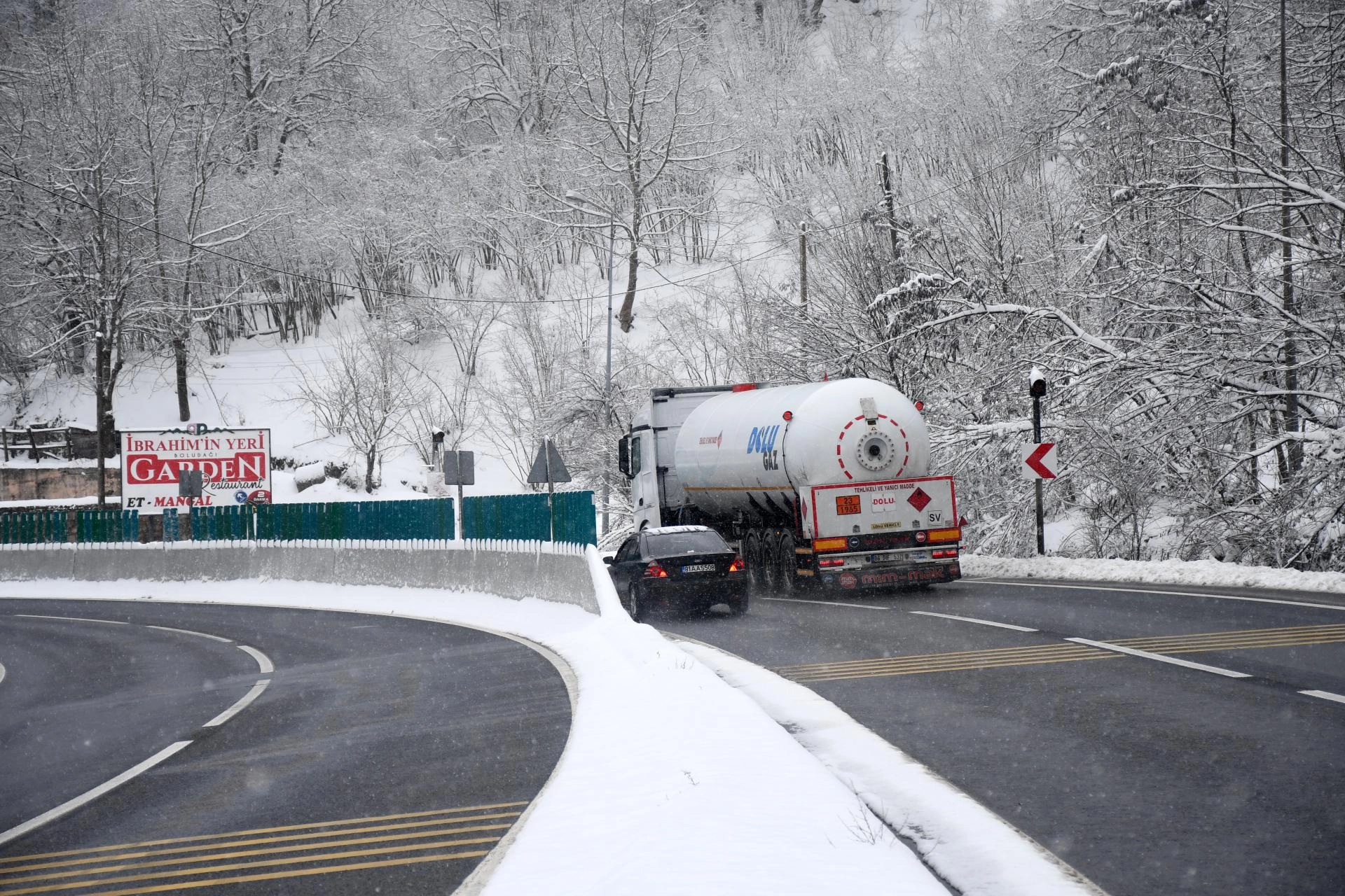 BOLU (AA) - D-100 kara yolunun Bolu Dağı kesiminde yoğun kar yağışı etkili oluyor.