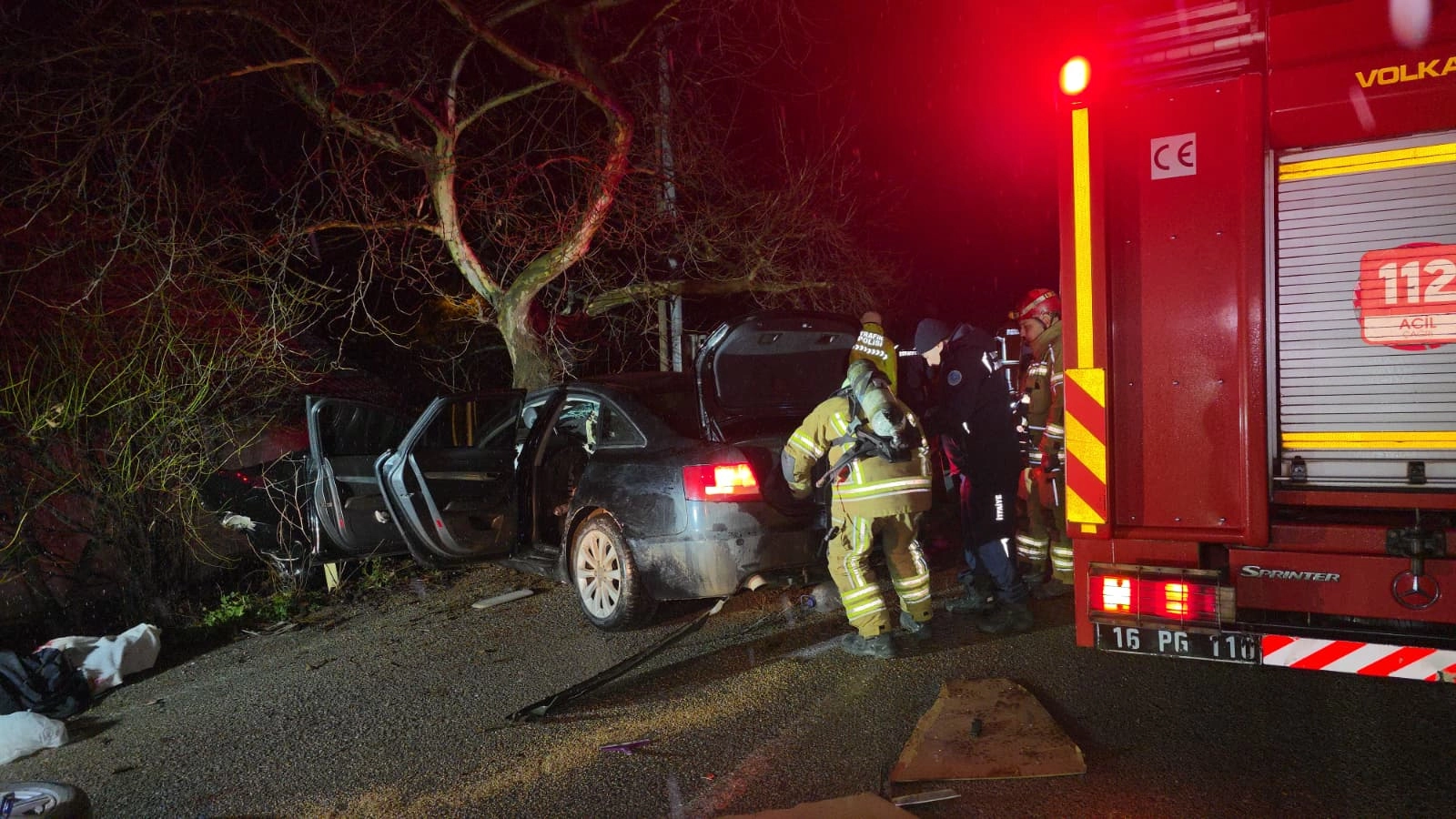 Bursa'da ağaca çarpan otomobildeki 2 kişi öldü, 2 kişi yaralandı