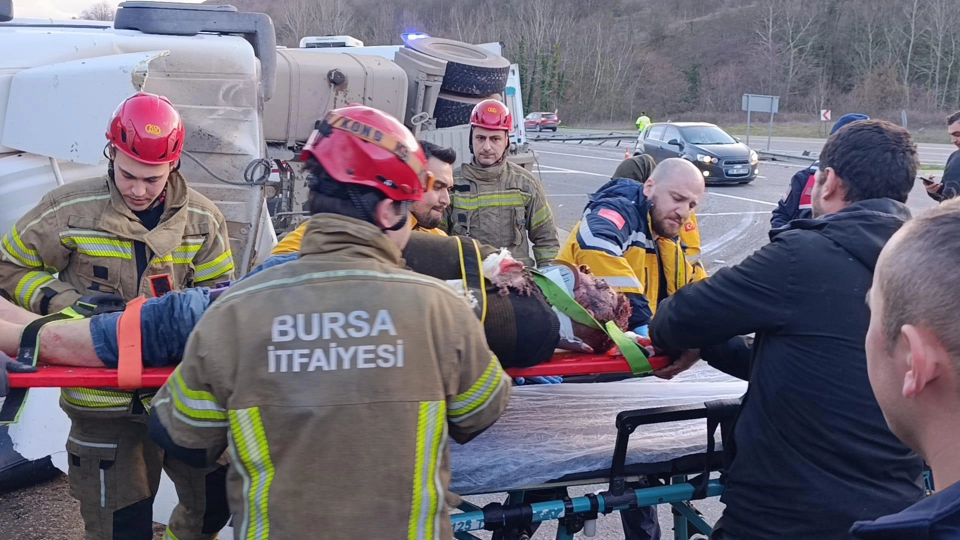 Bursa'da devrilen beton mikserinin sürücüsü ağır yaralandı