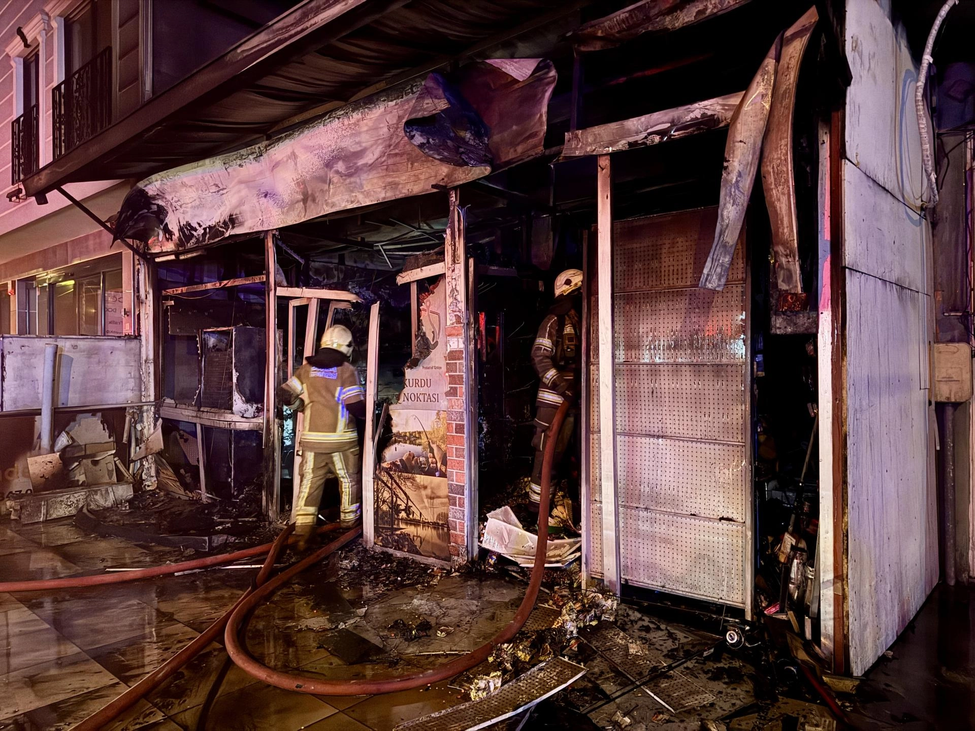 Yangın nedeniyle iş yerinde ve evde hasar oluştu.