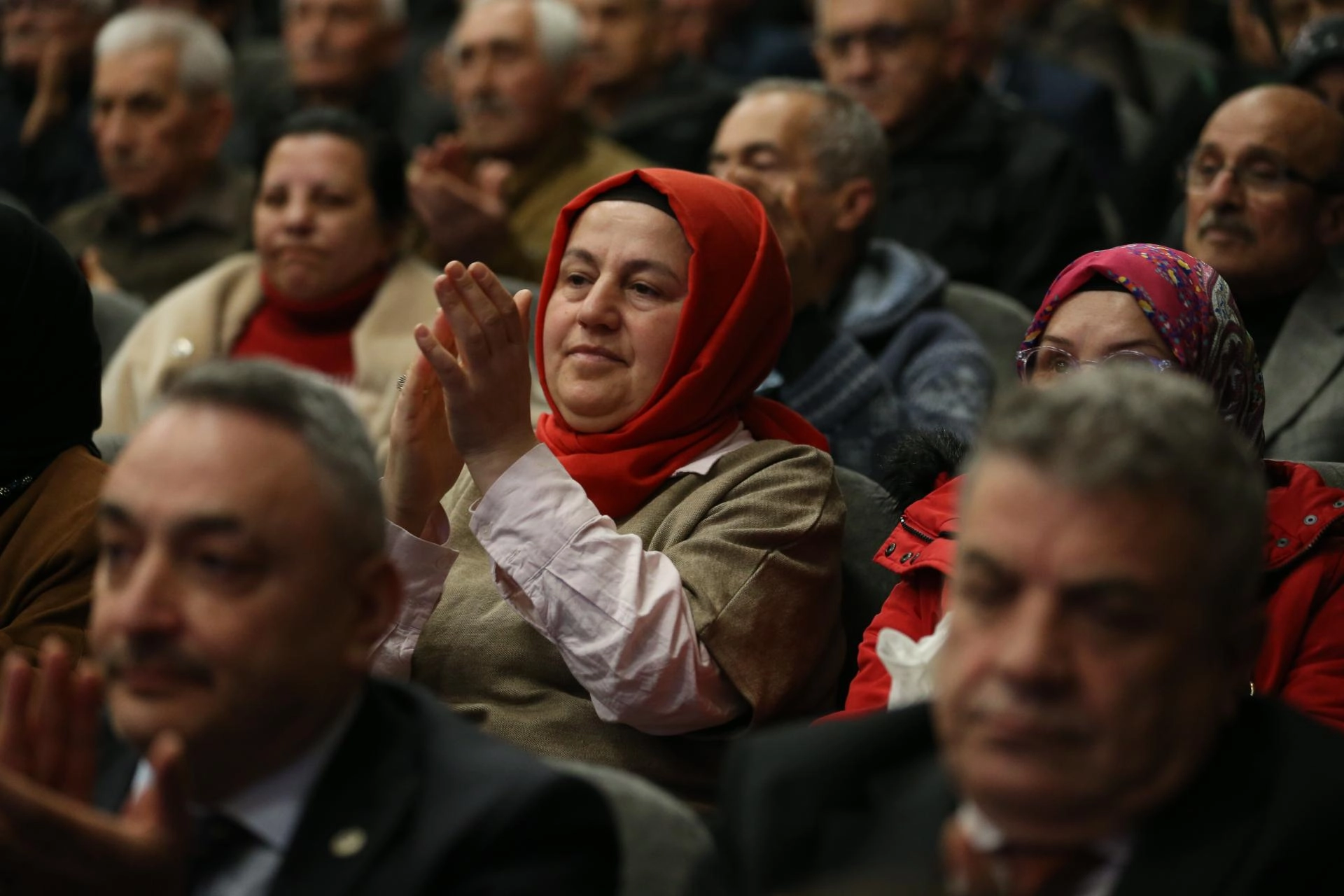 "Bize, 'Bu facianın altından kalkamazlar', 'Devlet bu enkazın altında kalır, bu kadar büyük bir yıkımı ayağa kaldıramazlar' dediler. Peki biz ne yaptık? Daha birinci yılı dolmadan 11 ilimizin tamamını dünyanın en büyük şantiyesine çevirerek, evlerimizi, iş yerlerimizi, binalarımızı bir bir ayağa kaldırmaya başladık. Şehirlerimizi eskisinden çok daha sağlam, çok daha modern pırıl pırıl evlerle donattık. Dünyada eşi benzeri görülmemiş bir kenetlenmeyle, asrın felaketini, asrın dayanışmasına ve yardımlaşmasına çevirdik. Hamdolsun, Rabb'imizin yardımı, milletimizin duası, Sayın Cumhurbaşkanımız ve millete hizmet sevdalısı yol arkadaşları sayesinde depremin izlerini yavaş yavaş silmeye başladık."