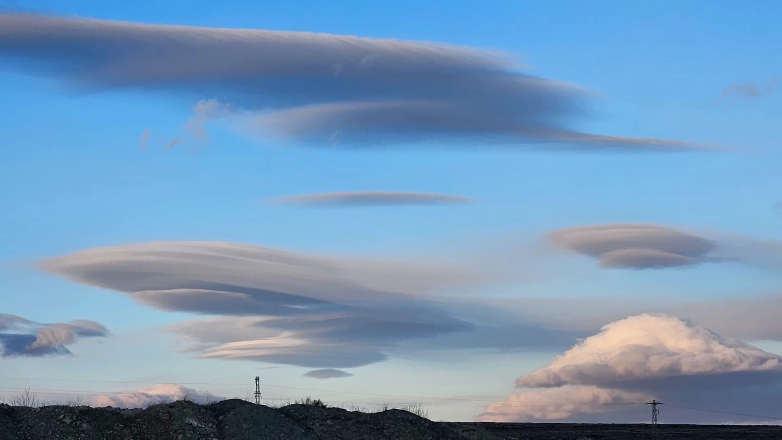 Çankırı semalarında çok katmanlı oluşan mercek bulutu, Çankırı-Ankara kara yolu Tüney köyü bölgesinde görüldü.
