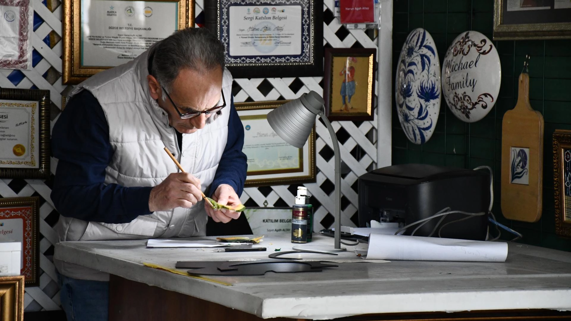 Kentte uzun süre inşaat teknikerliği ve reklamcılık yaptıktan sonra emekli olan 65 yaşındaki Altay, çalıştığı alanlarda tasarım, çizim, kesme ve kabartma becerilerini geliştirdi.