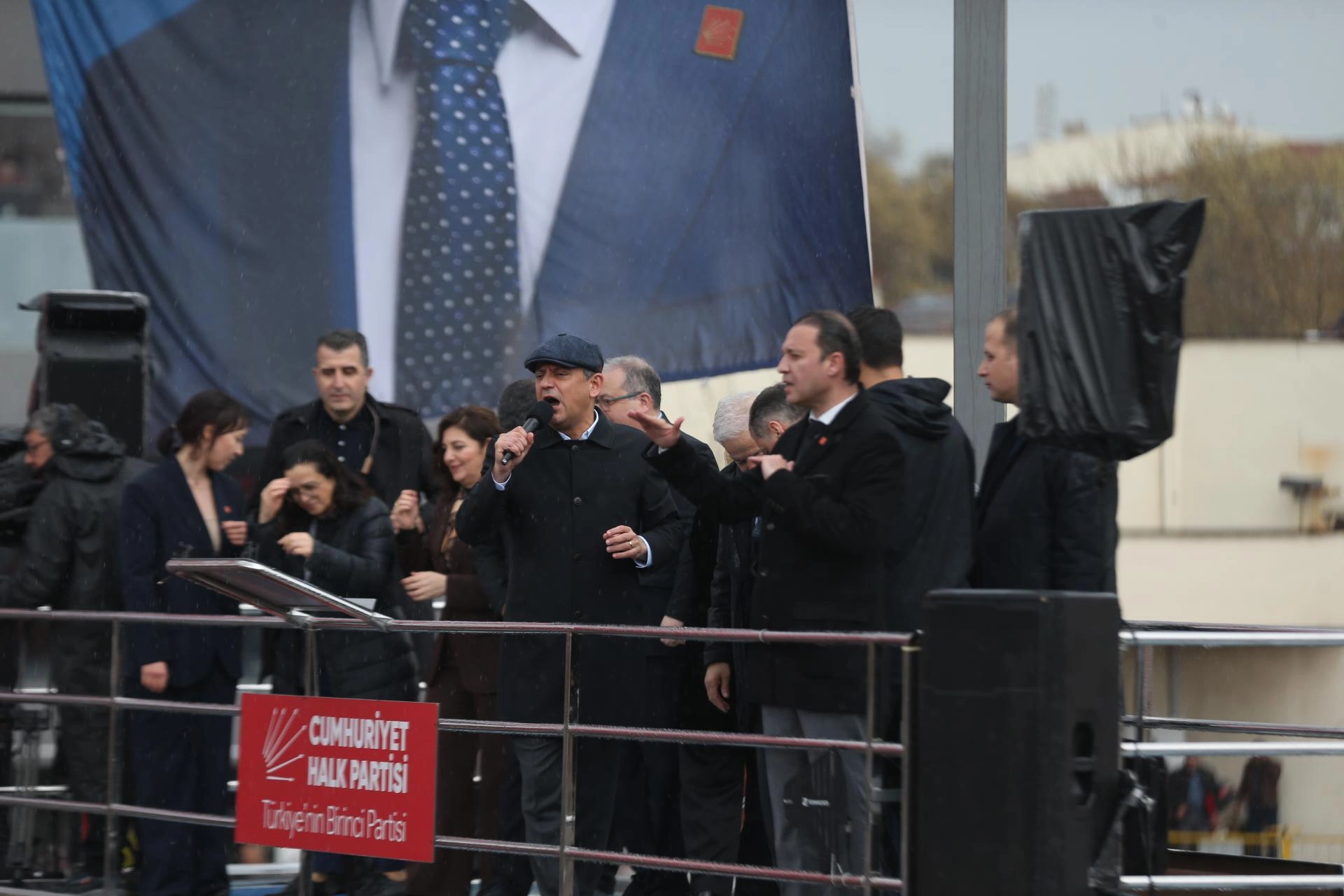 Mitinge, Çanakkale Belediye Başkanı Muharrem Erkek, CHP İl Başkanı Levent Gürbüz, belediye başkanları, milletvekilleri ve partililer katıldı.