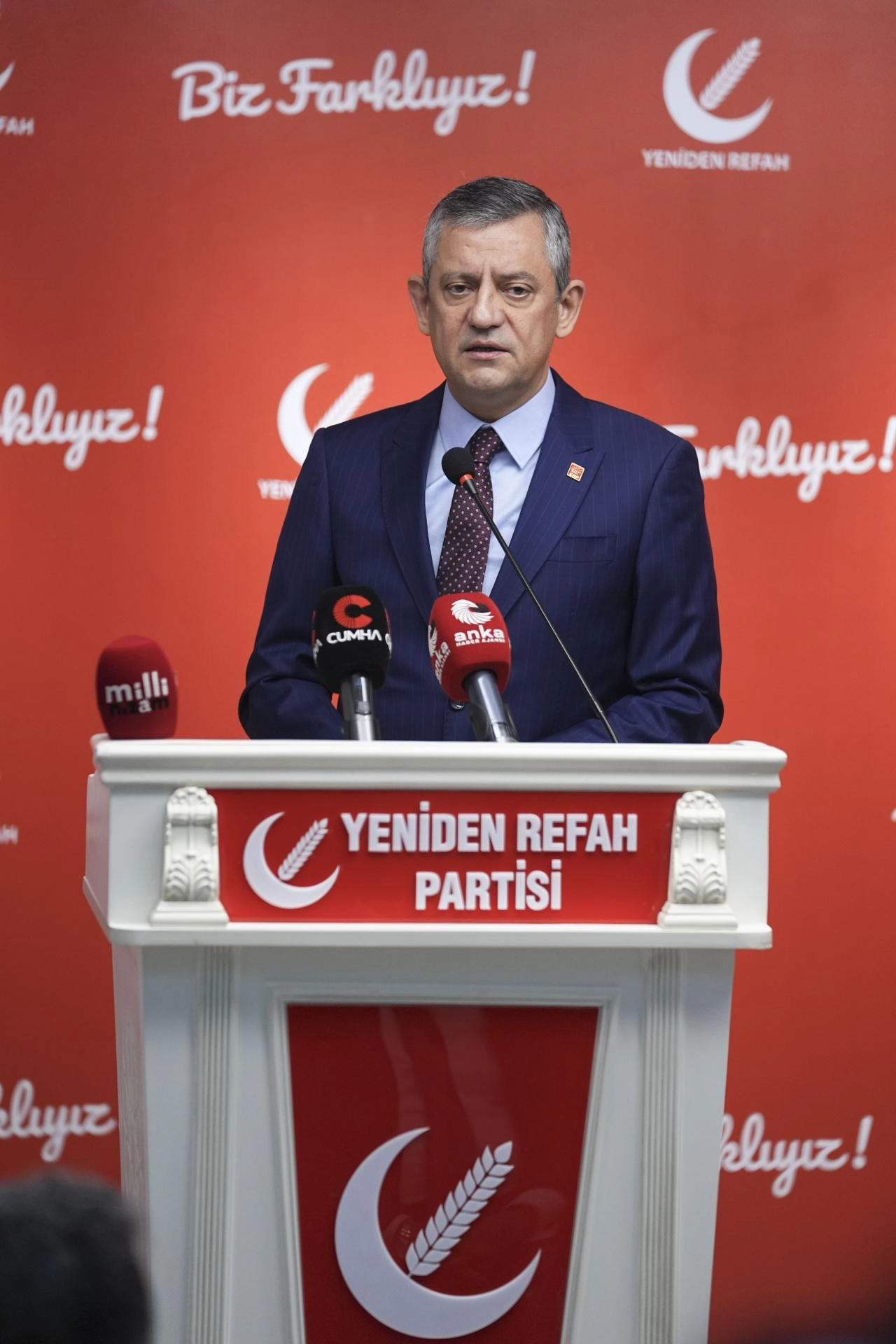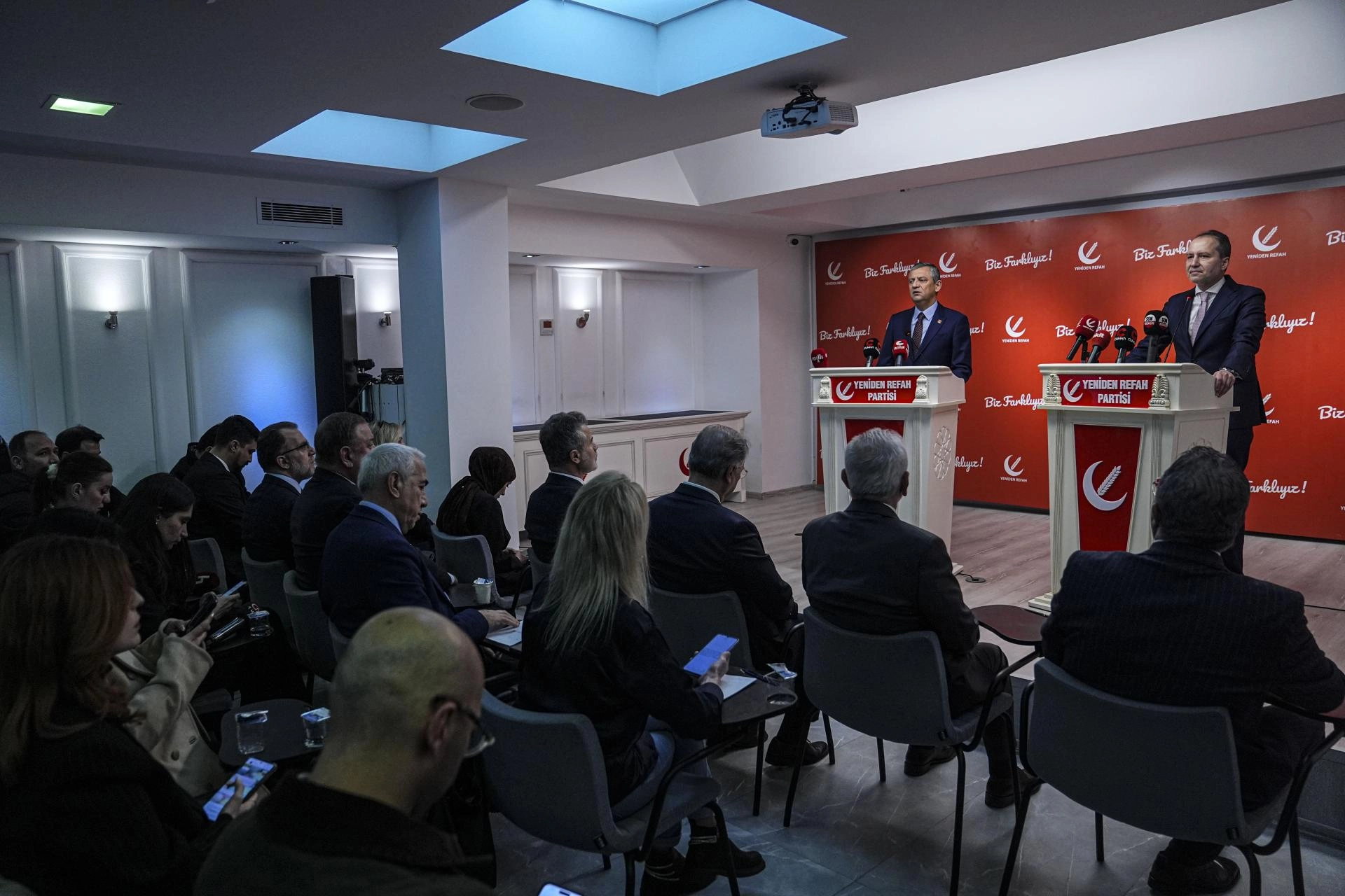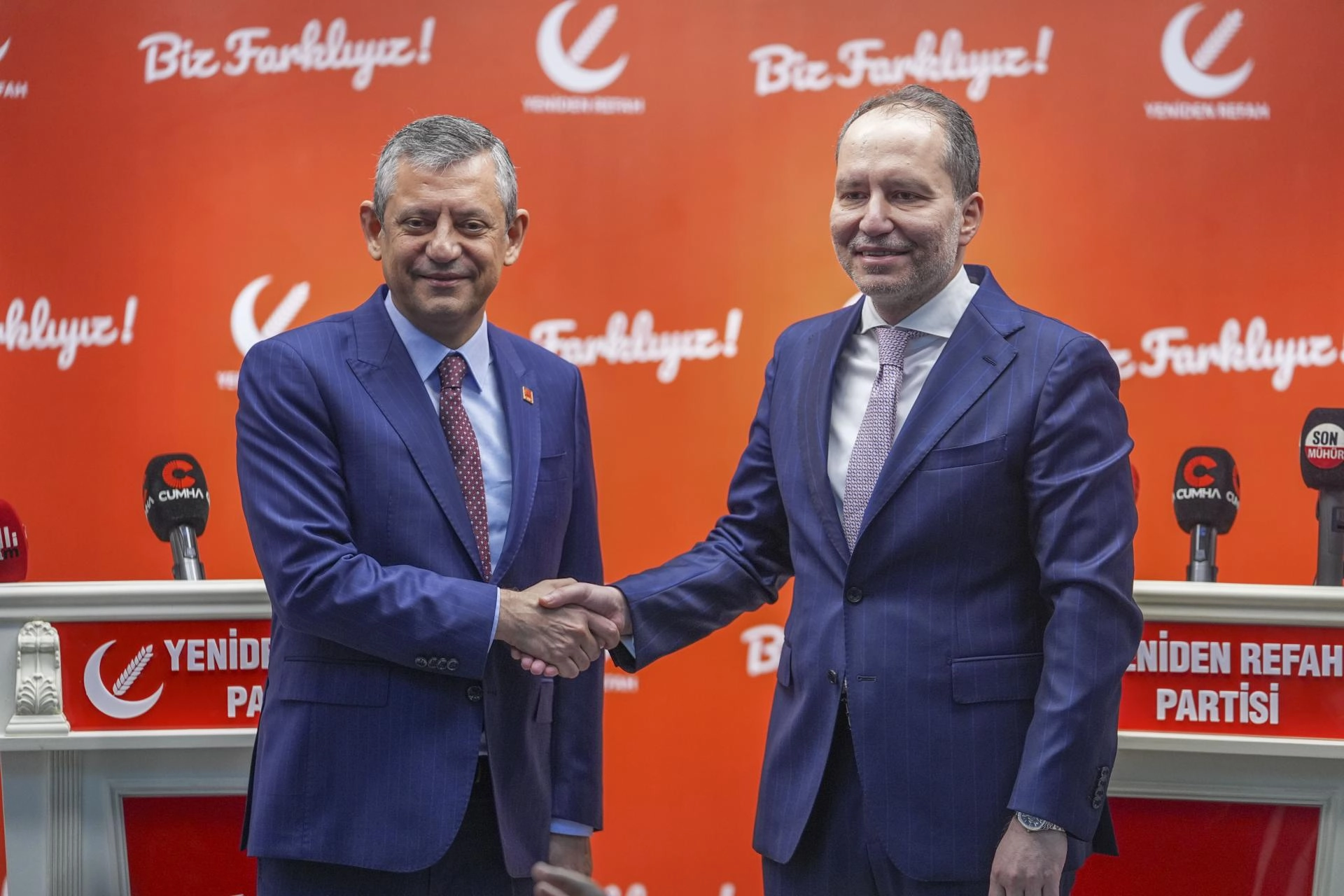 Yeniden Refah Partisi Genel Merkezi'nde yaklaşık 1 saat süren basına kapalı görüşmenin ardından düzenlenen ortak basın toplantısında konuşan Özel, Yeniden Refah Partisi'nin 3. Olağan Büyük Kongresi'nde tekrar genel başkan seçilen Erbakan'a "hayırlı olsun" ziyaretinde bulunduklarını söyledi.