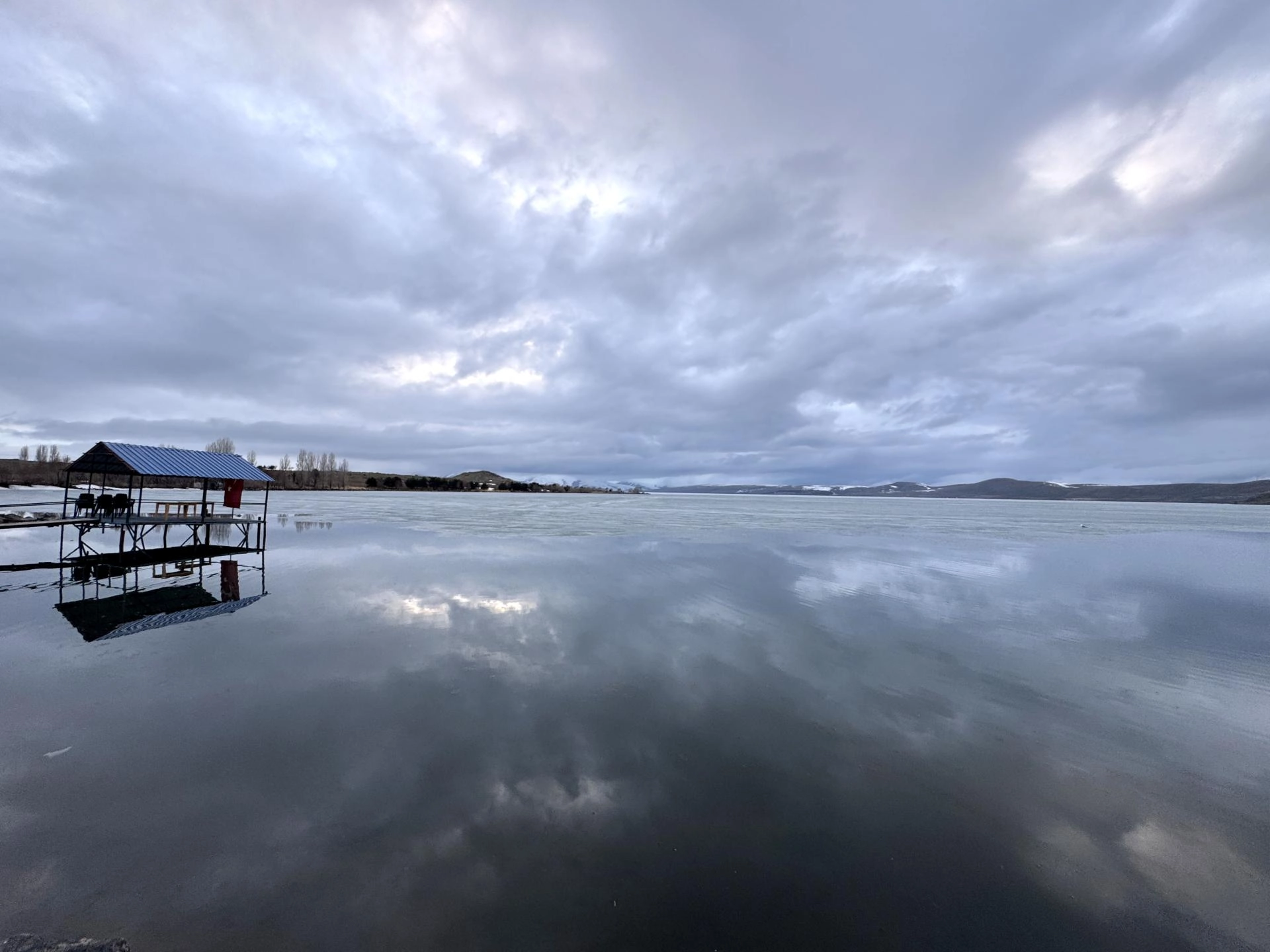 Kış aylarında kalın buz tabakası üzerinde atlı kızakla gezinti yapılan gölde, buzlar kıyı kesimlerinden çözülmeye başladı.