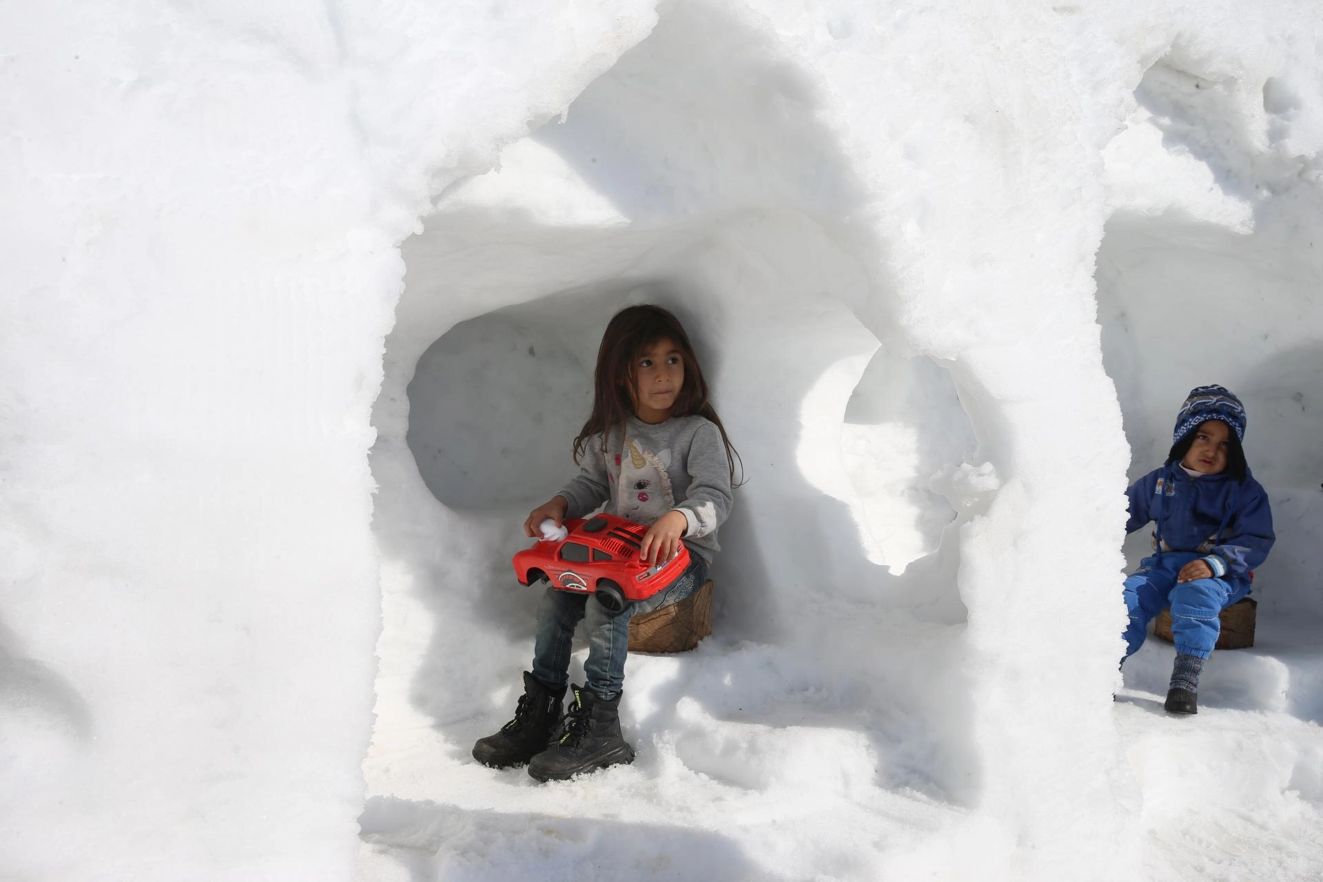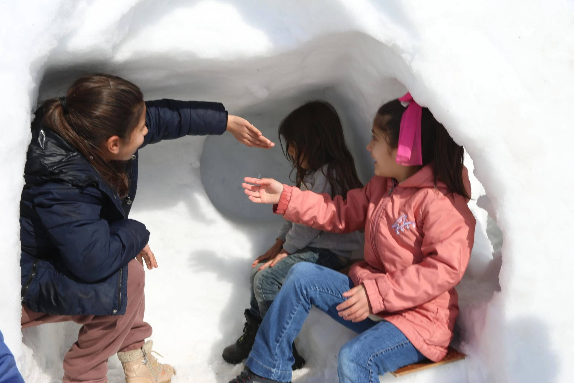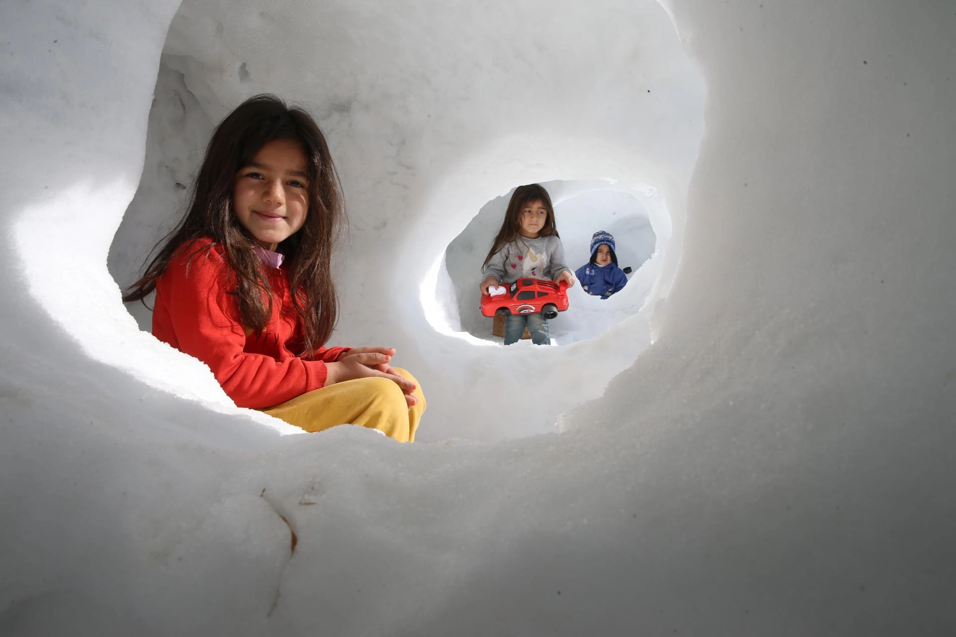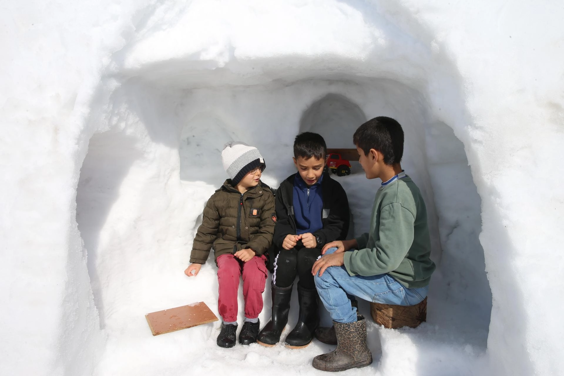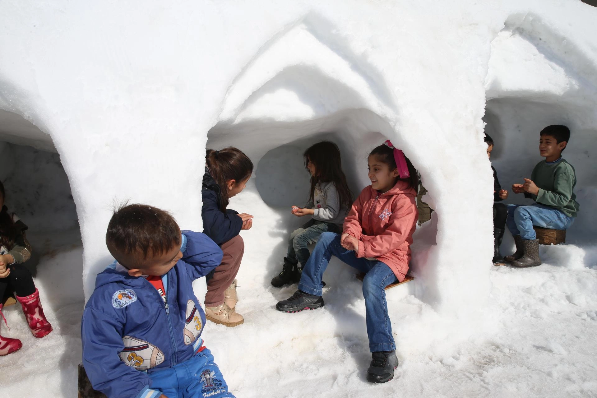 Çocuklar için kardan igluyu andıran oyun grubu yaptı