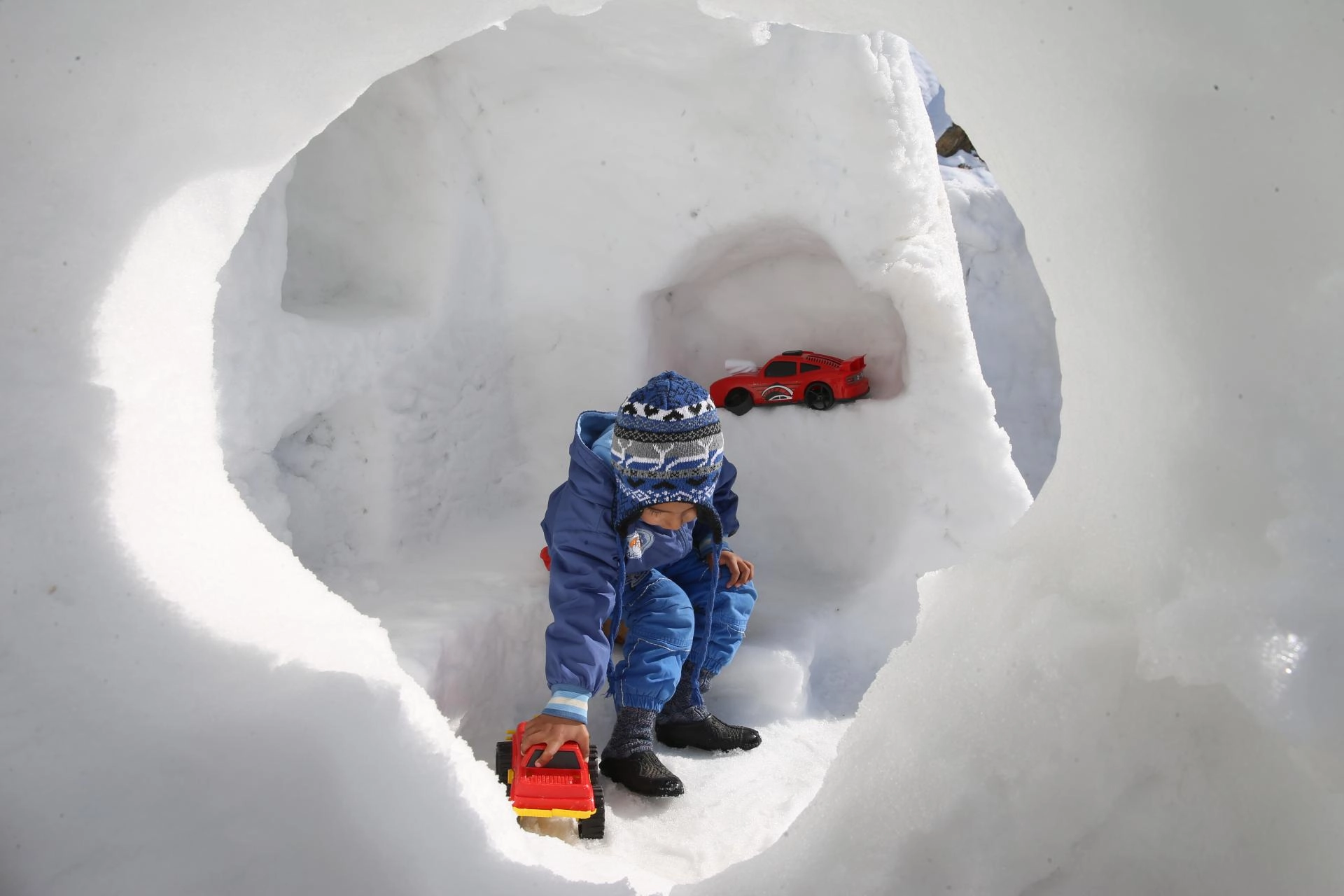 ADIYAMAN (AA) - Adıyaman'ın Çelikhan ilçesinde bir vatandaşın, yüksek kar kalınlığından faydalanarak igluyu andıran tarzda tasarladığı oyun grupları çocukları sevindirdi.