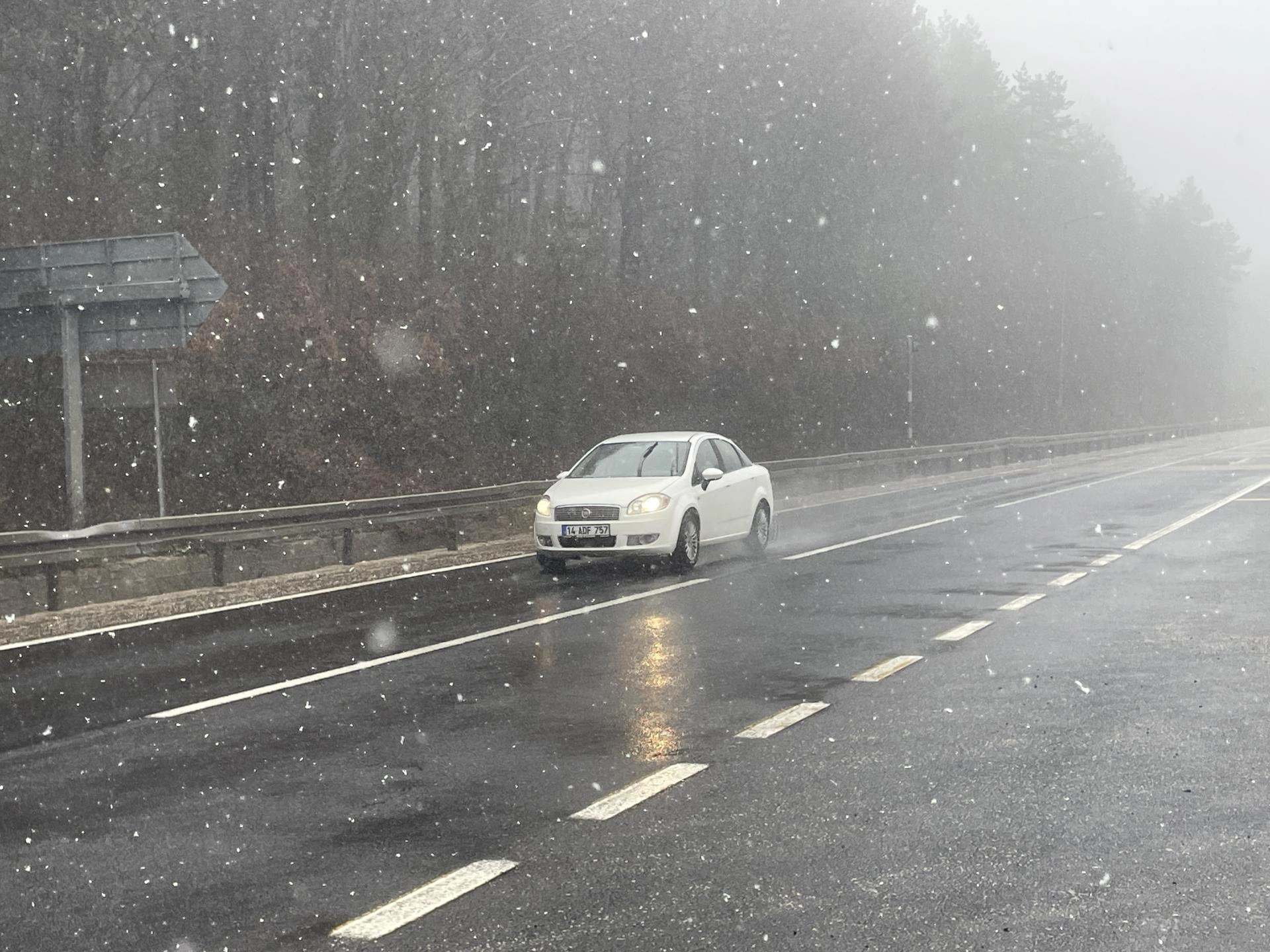 Sabah saatlerinde bölgede etkili olan sağanak Bolu Dağı kesiminde yerini kar yağışına bıraktı.