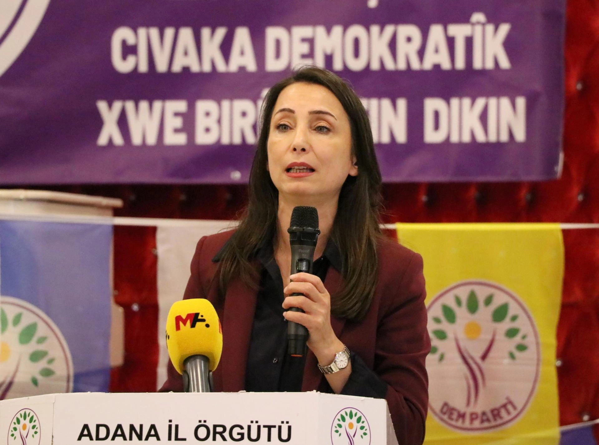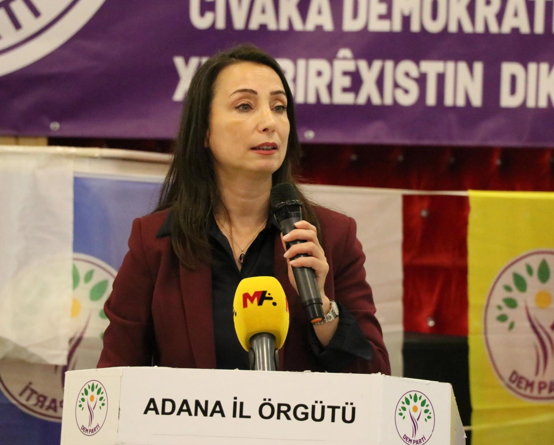 ADANA (AA) - DEM Parti Eş Genel Başkanı Tülay Hatimoğulları, "Biz, barışı her daim savaşın ve çatışmanın en yoğun olduğu dönemlerde de dillendirmekten, talep etmekten, barış için demokratik mücadelemizi yürütmekten asla vazgeçmedik." dedi.