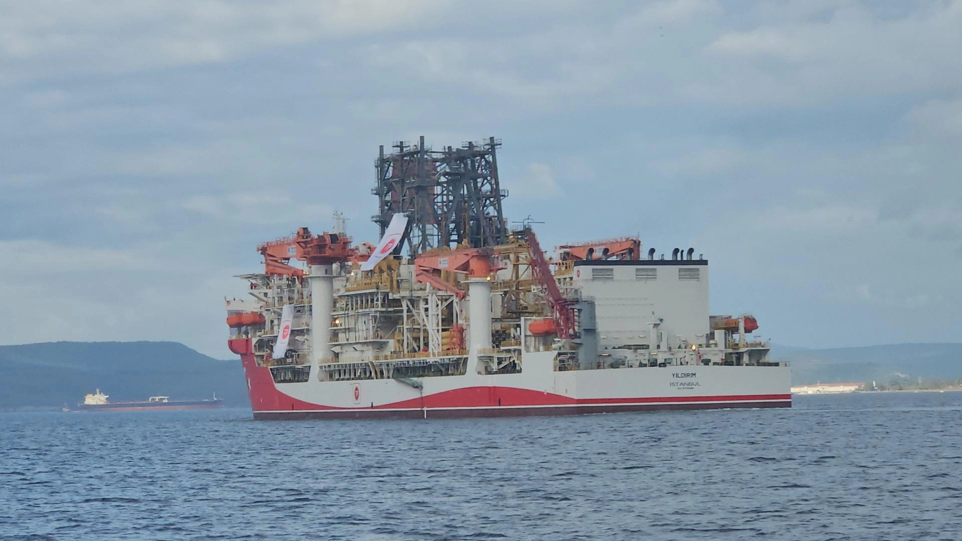 ÇANAKKALE (AA) - Türkiye'nin enerji filosuna eklenen yeni ultra derin deniz sondaj gemisi "Yıldırım" Çanakkale Boğazı'ndan geçiş yaptı.
