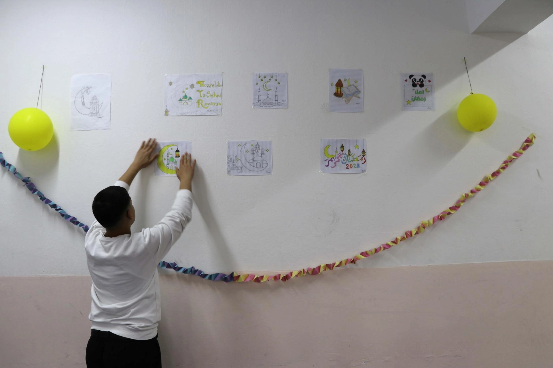 Koridora İngilizce "Hoş geldin ramazan" yazılı kağıtlar da asıldı.