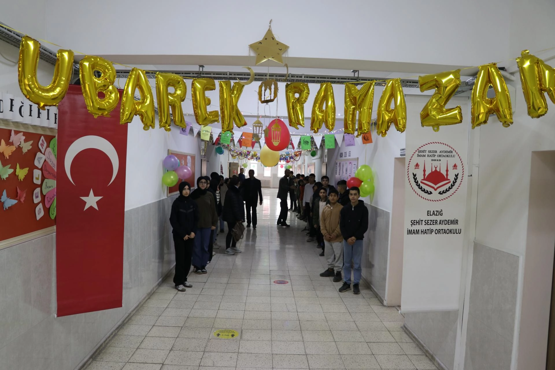 Elazığ Şehit Sezer Aydemir İmam Hatip Ortaokulu'nda düzenlenen etkinlikte de öğrenci ve öğretmenler tarafından okulda ışıklandırmalar ile ramazana özgü motif ve figürlerle süsleme yapıldı.