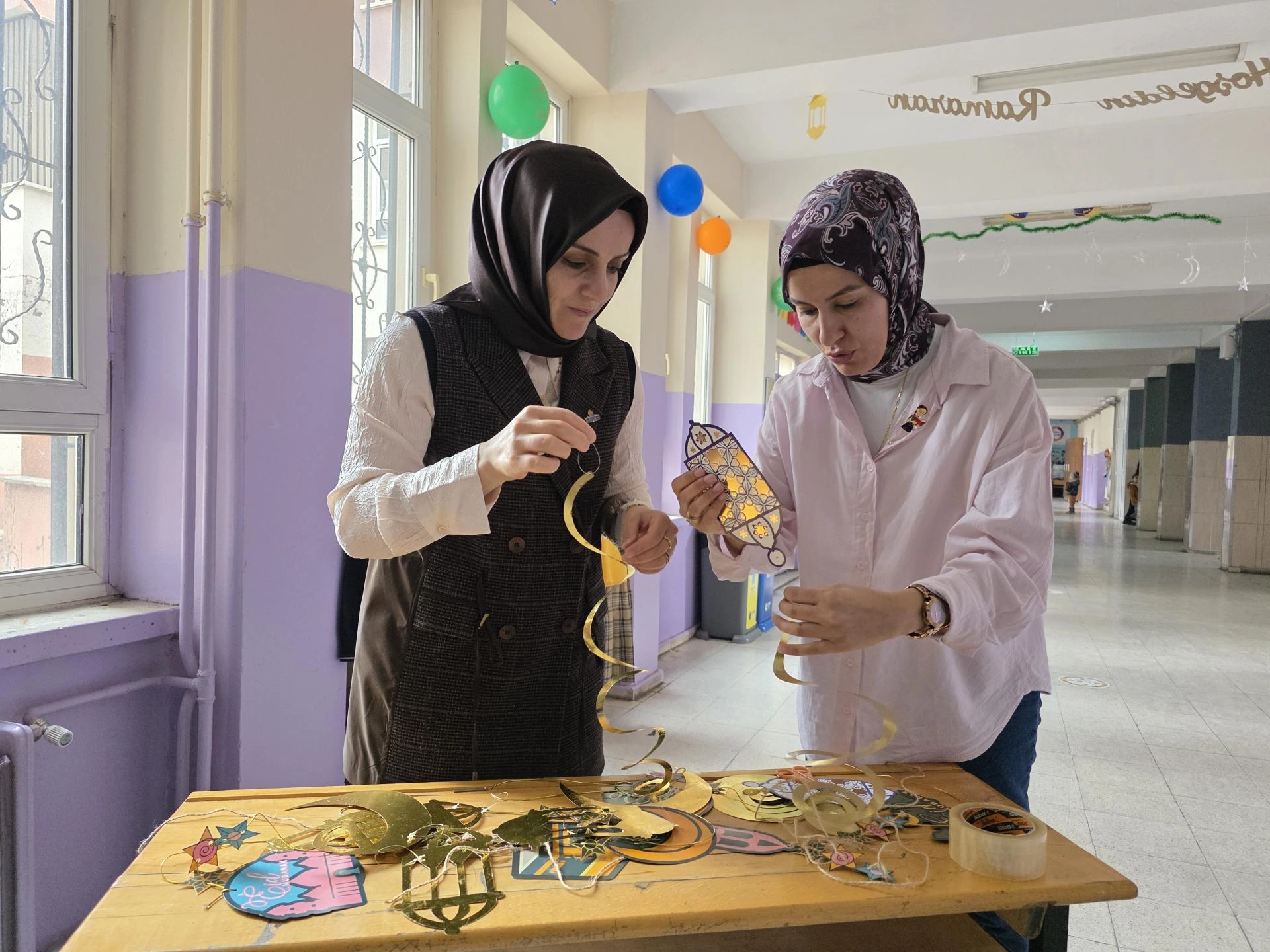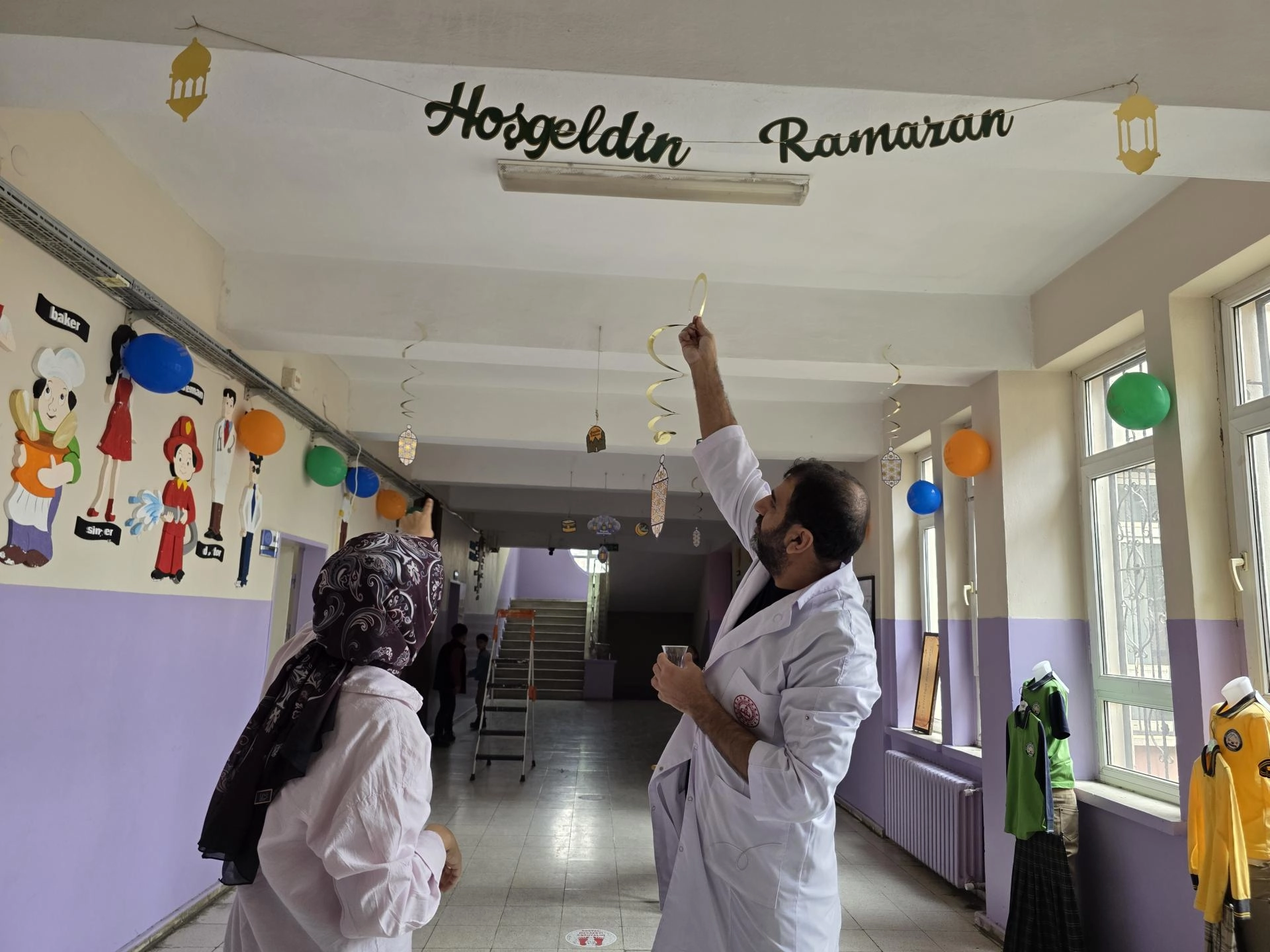 Fenerler ve geleneksel ramazan süslemeleri okulun çeşitli noktalarına asıldı.