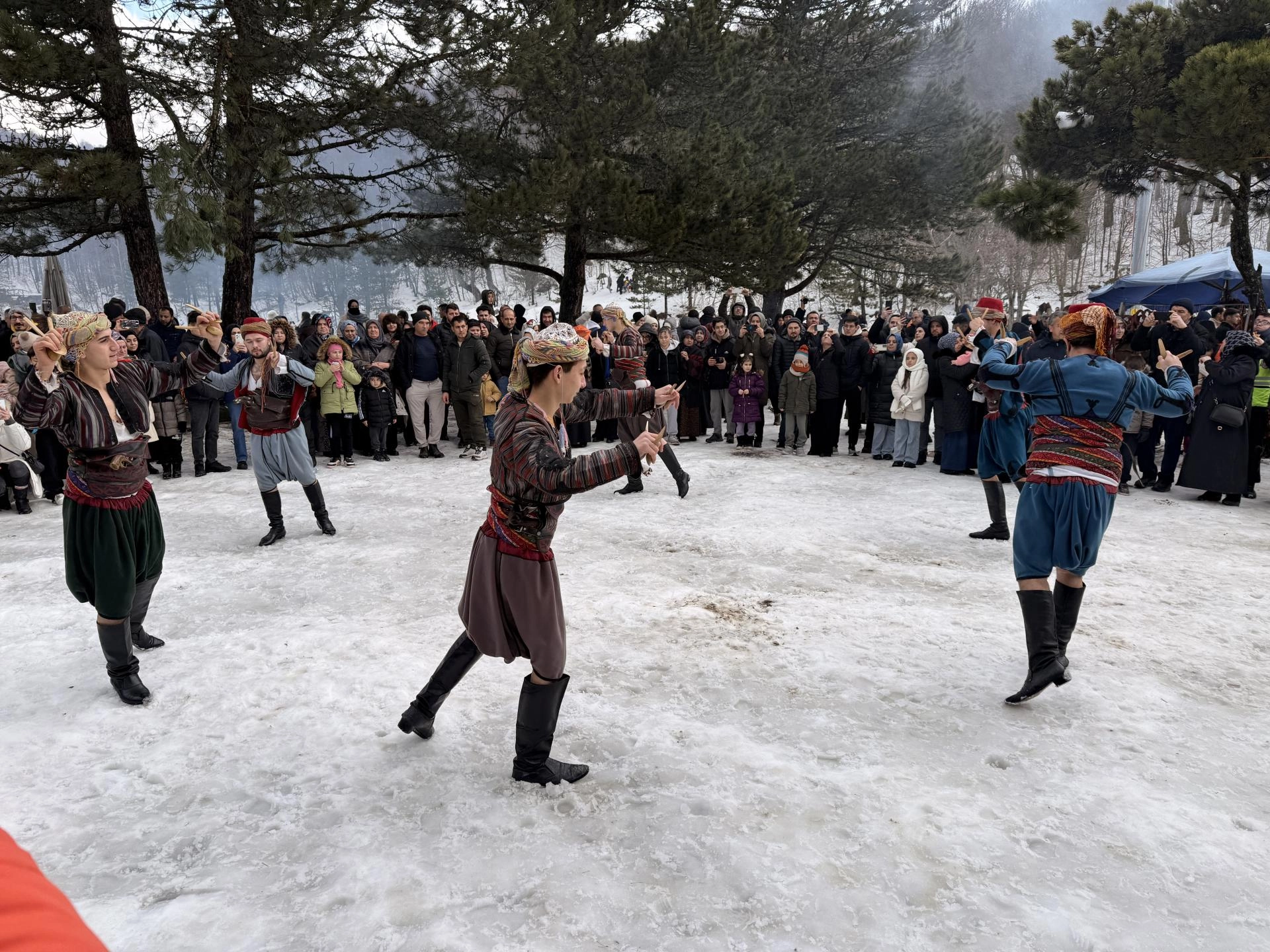 Festival boyunca vatandaşlar sucuk ekmek alarak derneklere katkıda bulunurken, kış manzarası eşliğinde düzenlenen etkinlikler renkli görüntülere sahne oldu.