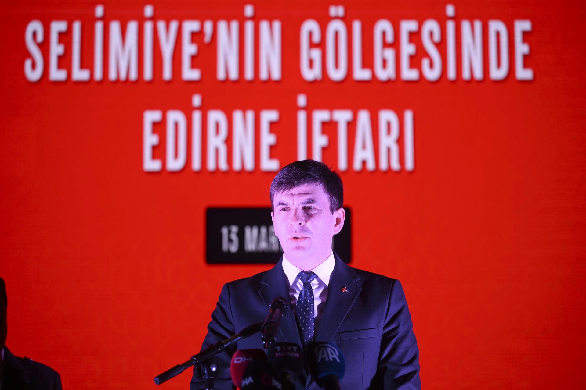 "Balkanlar'dan doğup gelen Meriç, Arda ve Tunca'nın birleştiği bu şehir tarih boyunca Balkan coğrafyası için bir köprü olmuştur. Edirne farklı dinlerin, inançların ve kültürlerin birlikte yaşadığı bir medeniyet merkezidir. Sarı Saltık'ın hoşgörüsü, Hasan Sezai'nin muhabbeti ve Mimar Sinan'ın desteğiyle yoğrulan bu topraklar Balkan şehirler arasında sarsılmaz bağın ebedi teminatı durumundadır. Çünkü bizim geçmişimiz birdir, geleceğimiz birdir, değerlerimiz ortaktır. Geçtiğimiz yıllarda bu meydanda toplandığımızda gözbebeğimiz Selimiye restorasyondaydı. Hamdolsun ki hasret dolu bekleyiş sona erdi. Restorasyonu tamamlanan Selimiye tüm ihtişamıyla yeniden ibadete açıldı."