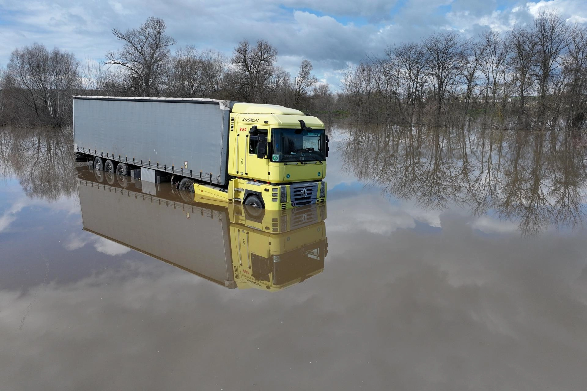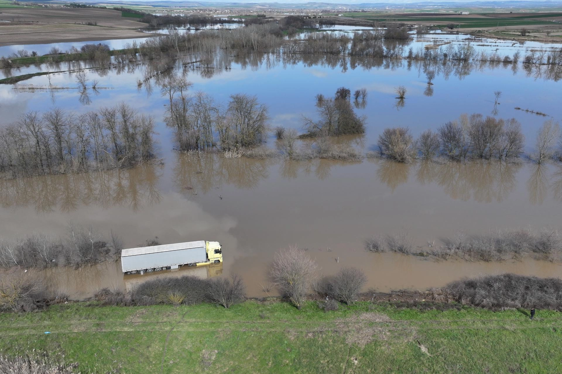 Bulgaristan uyruklu Asen Atanasov’un kullandığı tır, Tunca Nehri’nin taşkın nedeniyle su bastığı Avarız köyü yolunda sürücüsünün direksiyon hakimiyetini kaybetmesi sonucu yoldan çıktı.