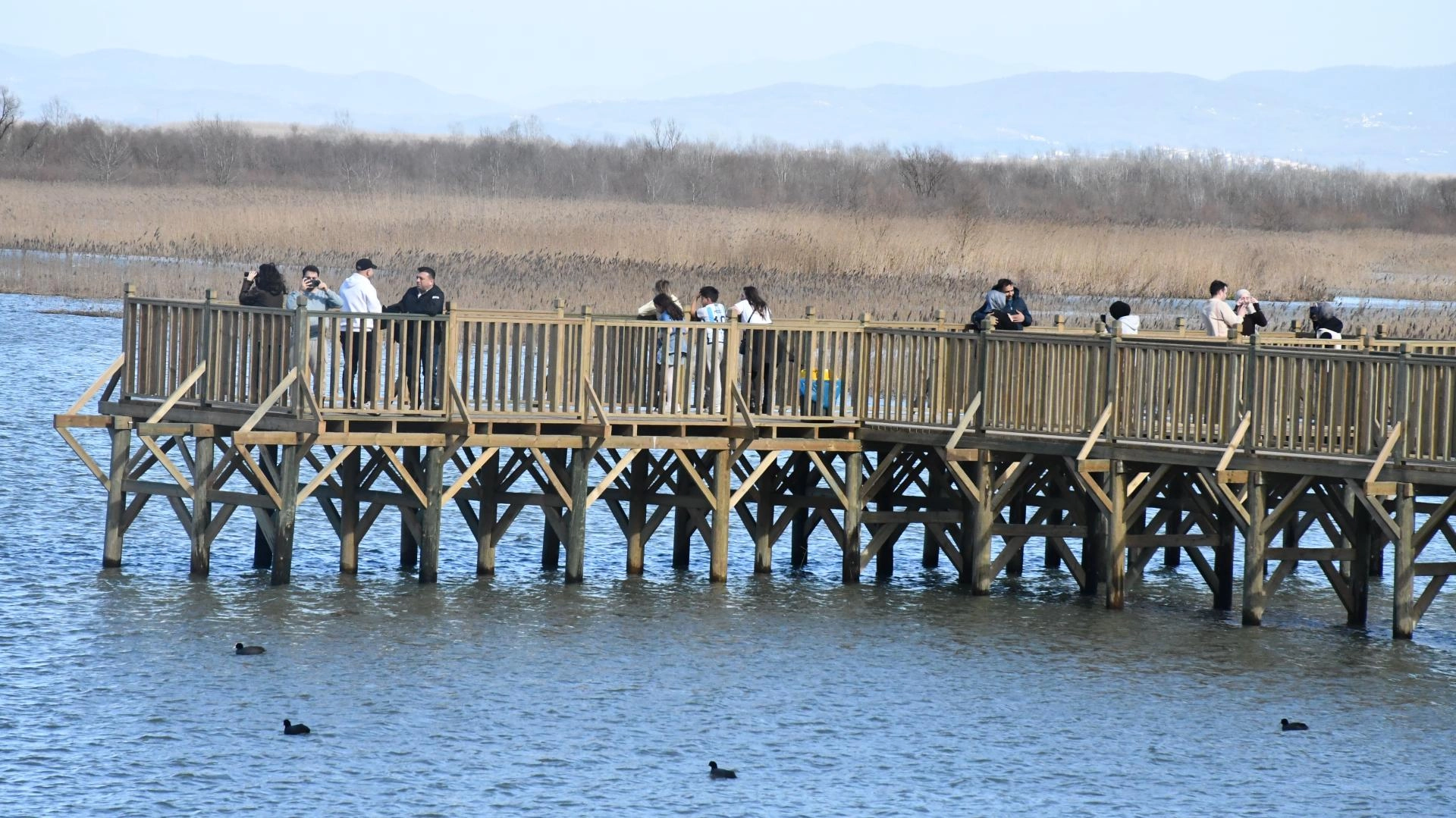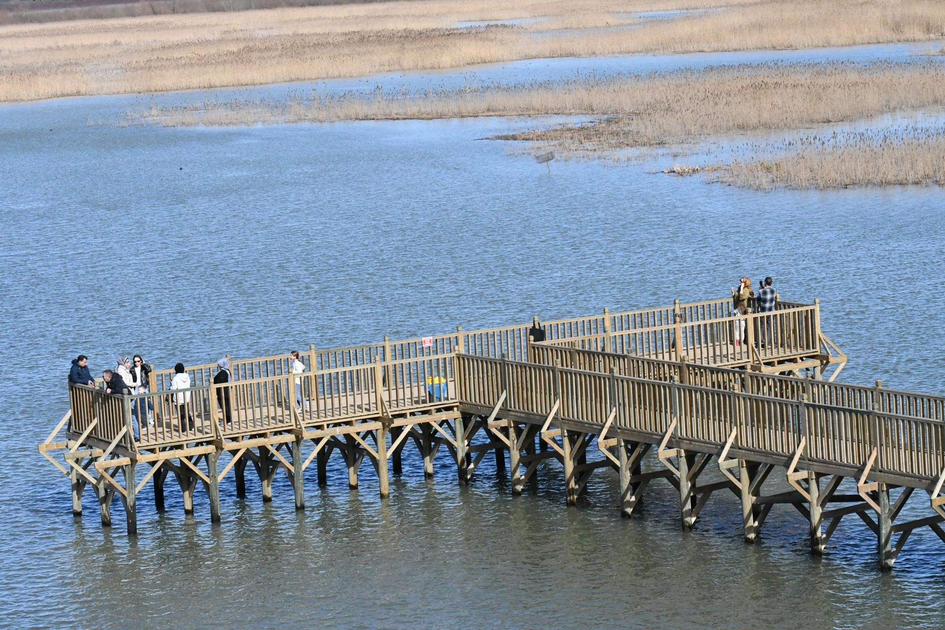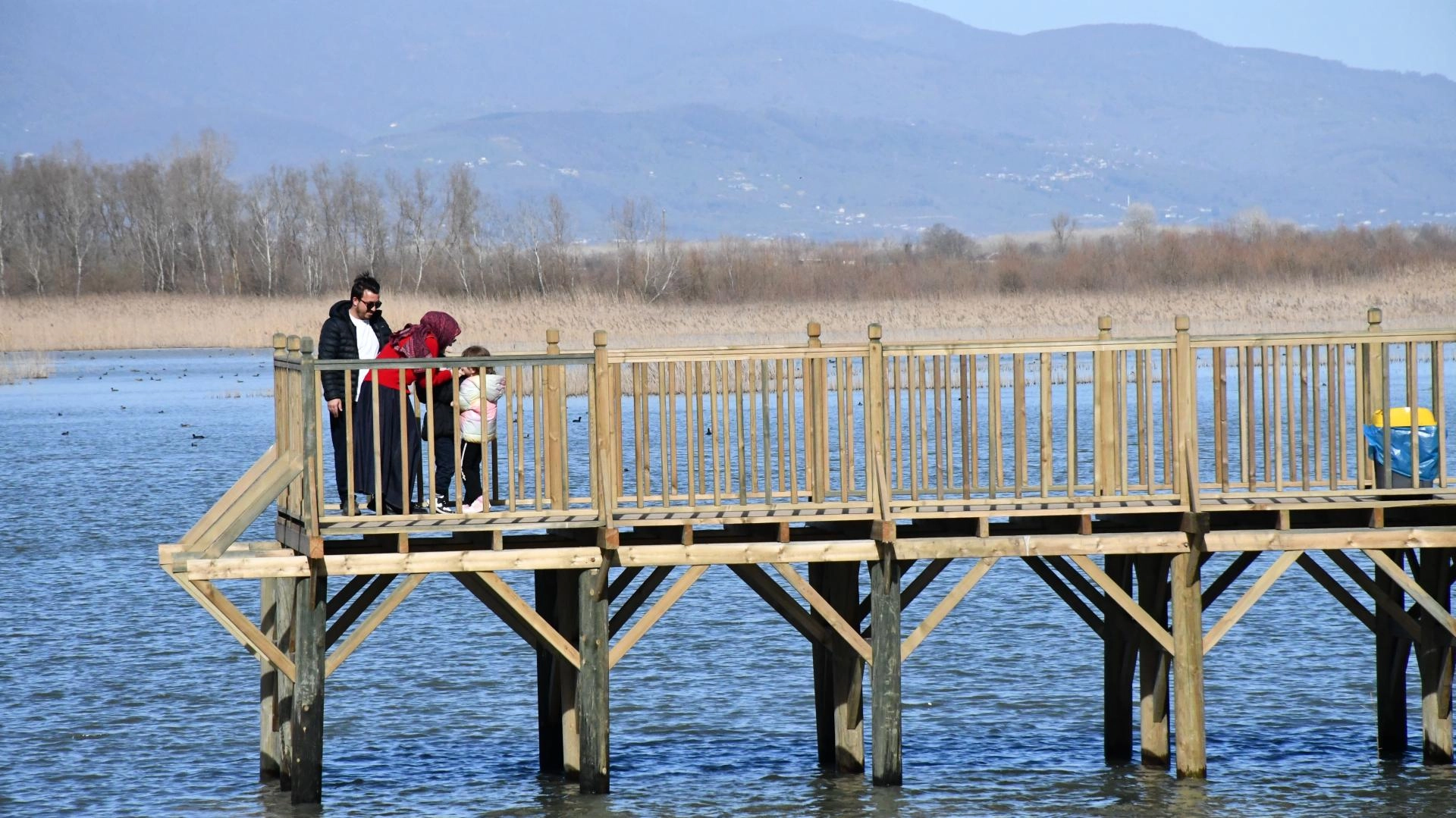 Sahip olduğu zengin bitki örtüsü ve su kaynaklarıyla kuşların göç yolu üzerinde bulunan alanı ziyaret edenler, göl çevresinde yürüyüş yaptı, Kuş Gözlem Kulesi ve iskeleden bölgedeki eşsiz manzarayı fotoğrafladı.