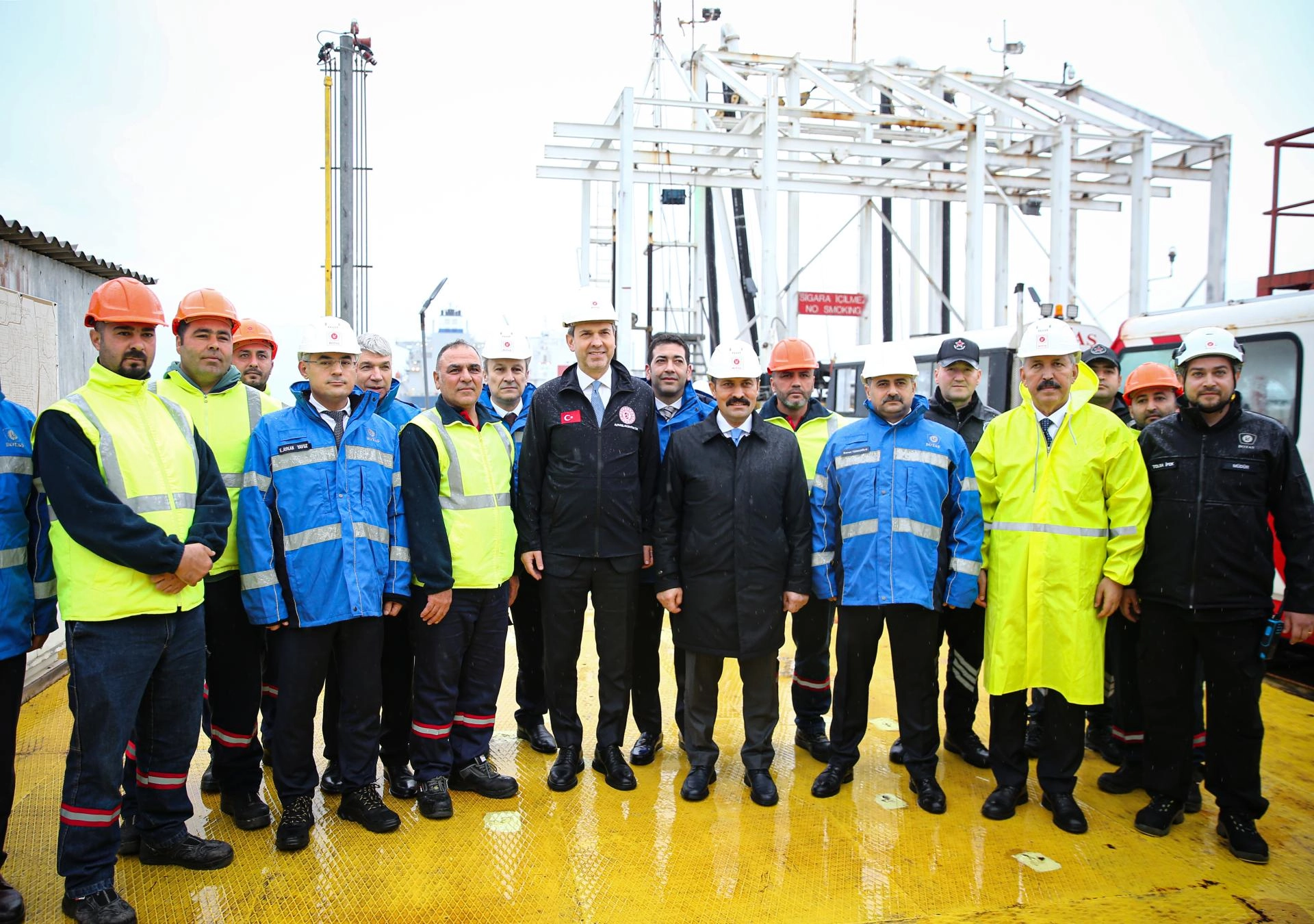 "Vatandaşlarımızın özellikle bu içinde bulunduğumuz kış mevsiminde çok daha yoğun bir şekilde hissettiği, doğal gaz ihtiyacımızın bir kısmını biz malumunuz boru hatlarımızla ama yine önemli bir miktarını, son dönemde yaptığımız yatırımlarla sıvılaştırılmış bir şekilde gemilerle alıyoruz. Tabii bu ülkemize gemilerle gelen sıvılaştırılmış doğal gazı da tekrar sistemimize kullanabilmek için gazlaştırmamız gerekiyor. Arkamızda görmüş olduğunuz bizim Ertuğrul Gazi gemimiz, işte bu işlevi yerine getiriyor ve günde yaklaşık 28 milyon metreküp sıvı haldeki doğal gazı, sıvılaştırılmış gelen doğal gazı, gaz fazına döndürüyor. Dolayısıyla burası bizim arz güvenliğimiz için, Türkiye için çok önemli bir tesis, onun içerisindeyiz. Bu geçtiğimiz 8 yılda yaklaşık 140'a yakın gemiden gemiye bu transferi gerçekleştirdik. İşte şimdi aslında 139'uncusunu arkamızda görüyorsunuz, bu işlem gerçekleşiyor ve burada günde 28 milyon metreküp, tabii ne demek bu? Şimdi içinde bulunduğumuz işte Hatay olmak üzere, Osmaniye, bu civardaki yaklaşık 17 ilin kış aylarında ihtiyaç duyduğu gazı aslında biz buradaki bu tesisimizden, gemimizden sağlamış oluyoruz. Dolayısıyla özellikle bu bölgemizin arz güvenliği için hakikaten çok önemli.