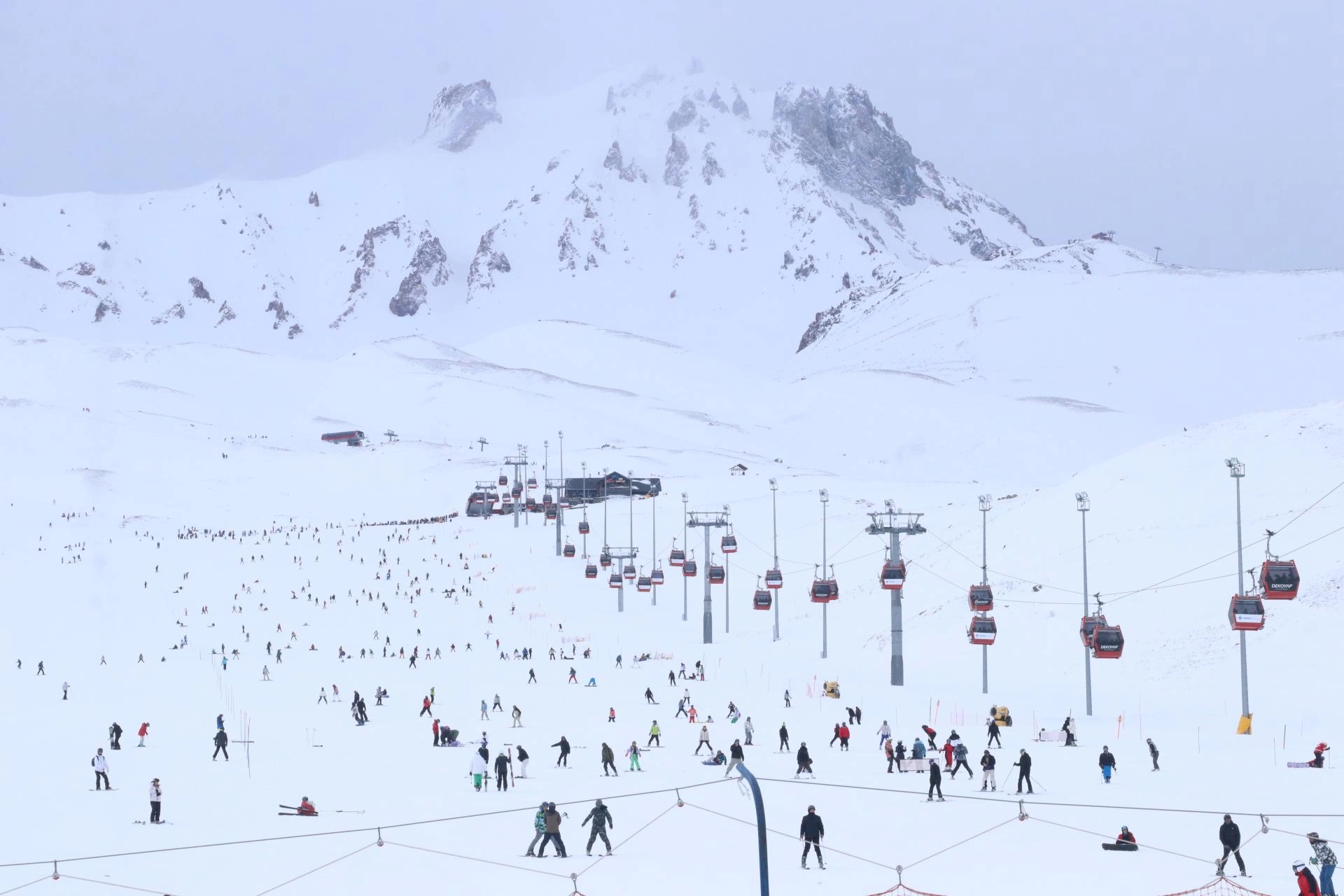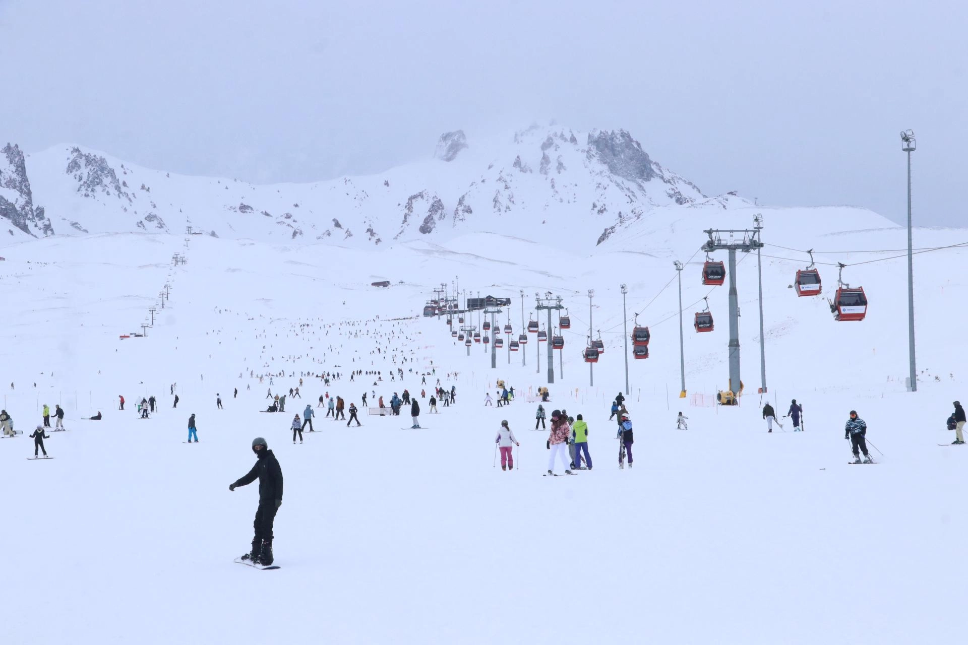 Hafta sonu tatilini kayak merkezinde geçirmek isteyen ziyaretçiler, İç Anadolu'nun "zirvesi" olarak nitelendirilen Erciyes Dağı'nda yoğunluk oluşturdu.