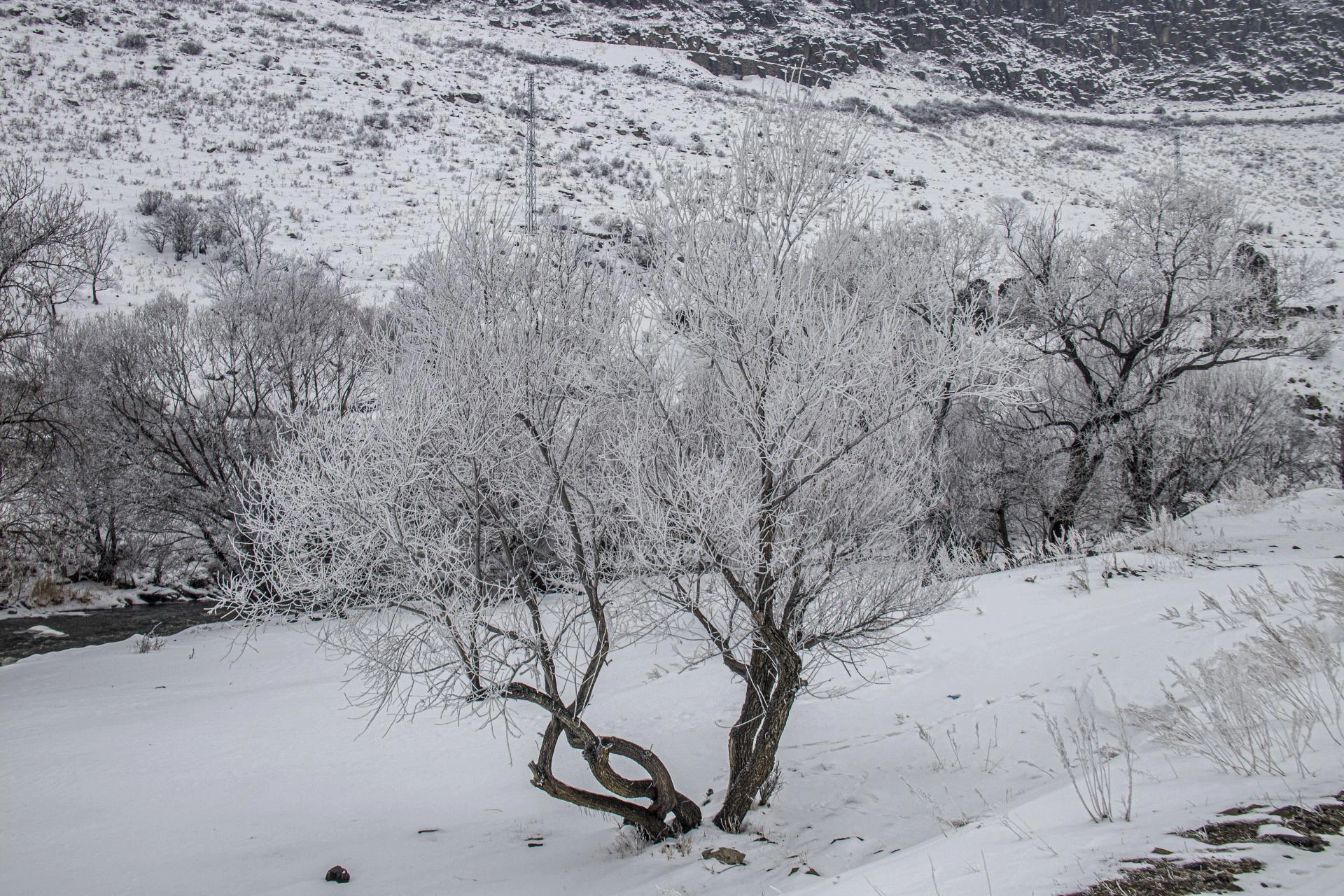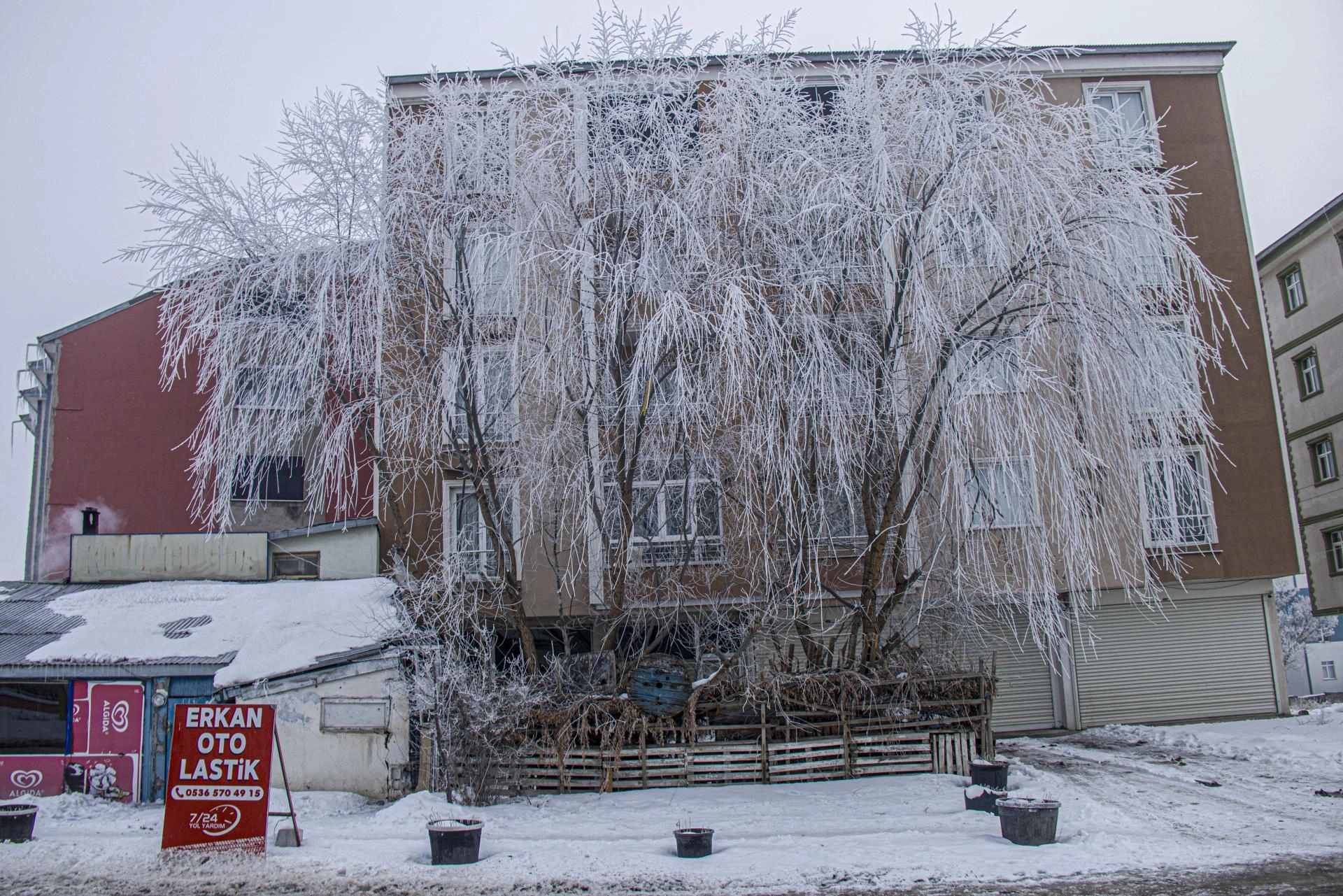 Hava sıcaklığının sıfırın altında 16 dereceye düştüğü Kars'ta, bitkiler, ağaçlar kırağıyla kaplandı.