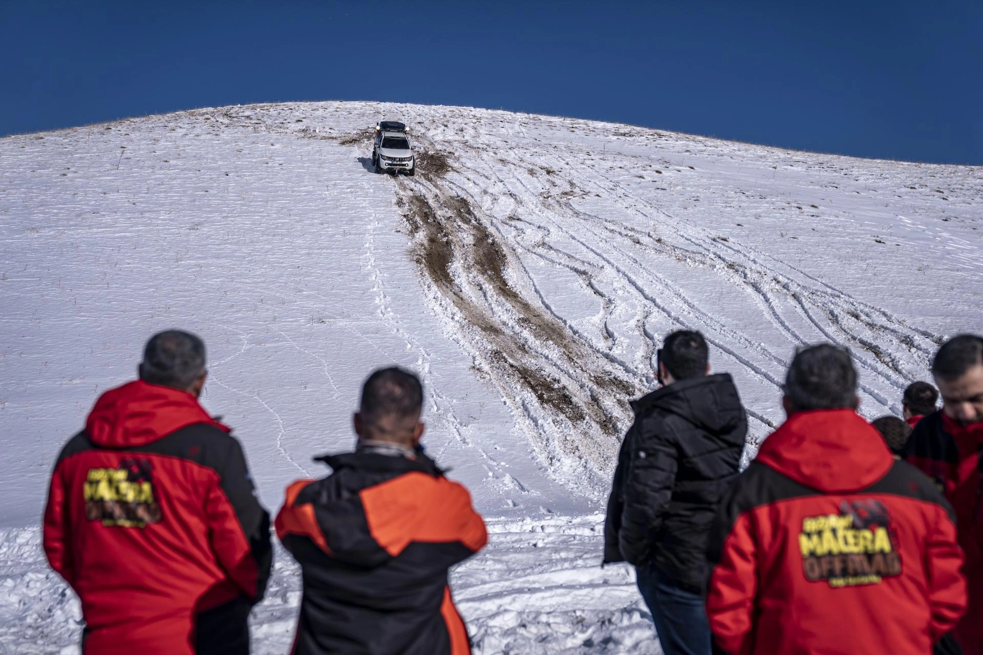 Zaman zaman kara saplanan 4x4 araçlarıyla karlı dağları aşan macera tutkunları ile Vali Çiftçi, doğada zor şartlarda yaşam mücadelesi veren hayvanlar için yanlarında getirdikleri yemleri toprağa bıraktı.