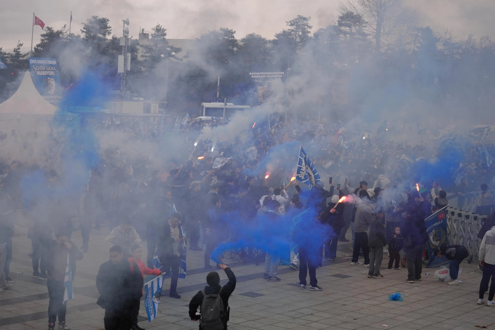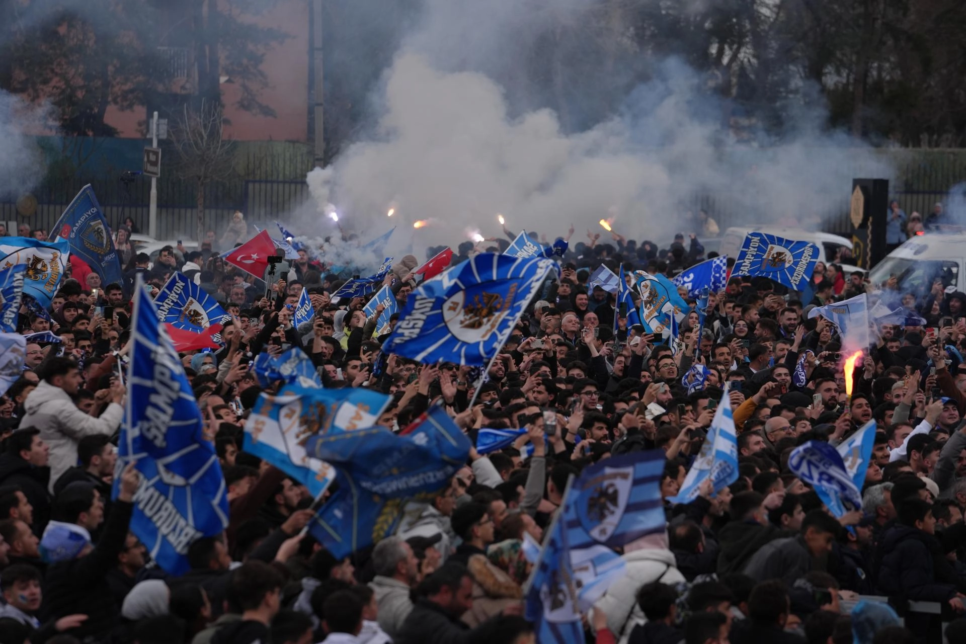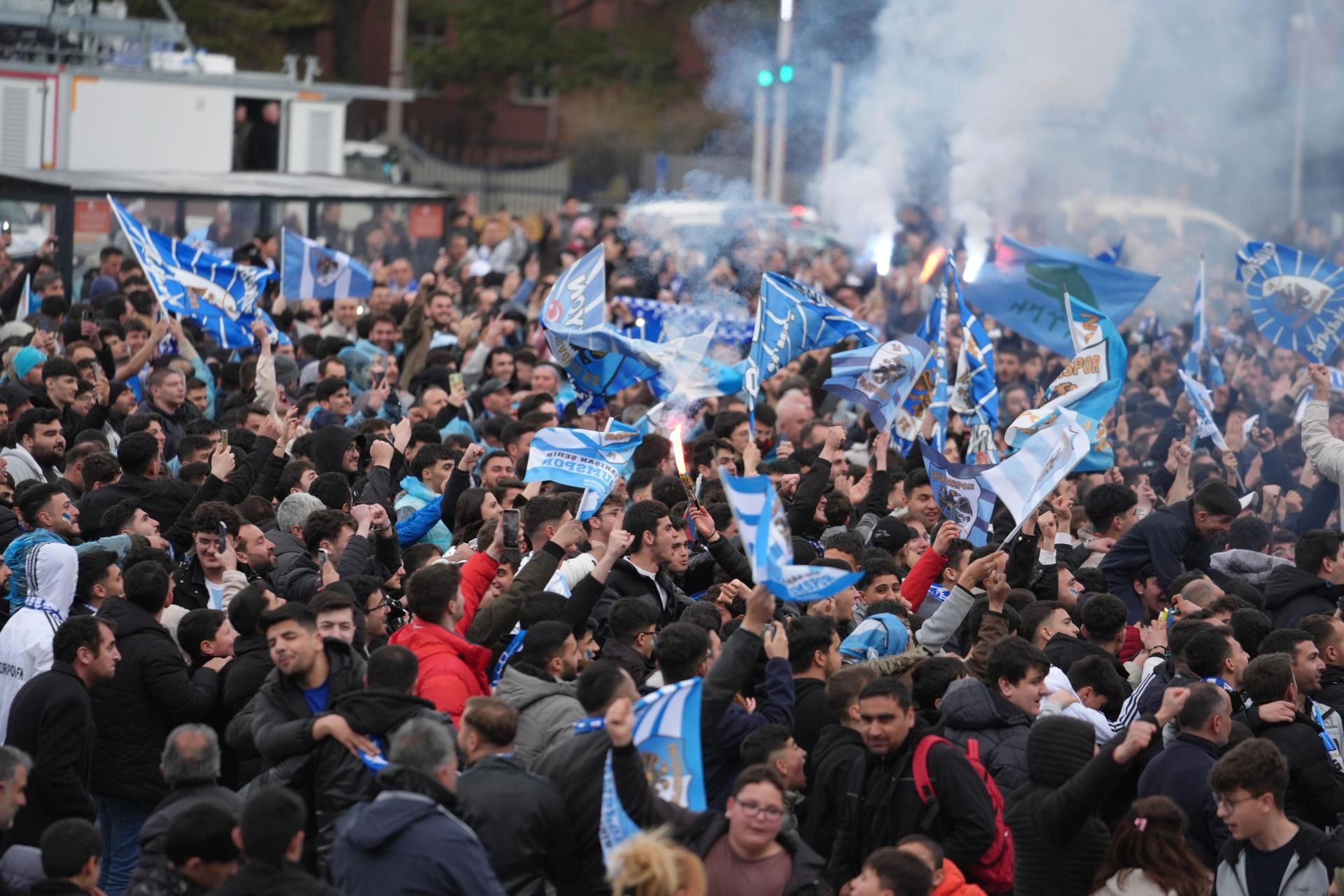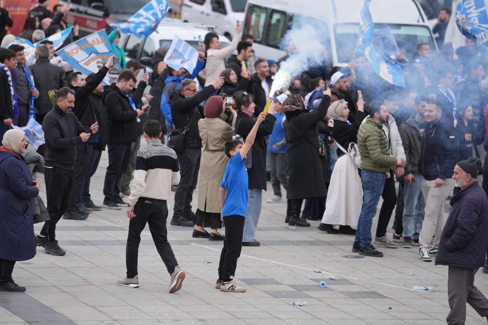 Ellerinde bayraklarla tezahüratlar yapan taraftarlar, halay çekti. Bazı taraftarlar ise Cumhuriyet Caddesi'nden araçlarıyla konvoy yaptı, korna çalarak şehri turladı.