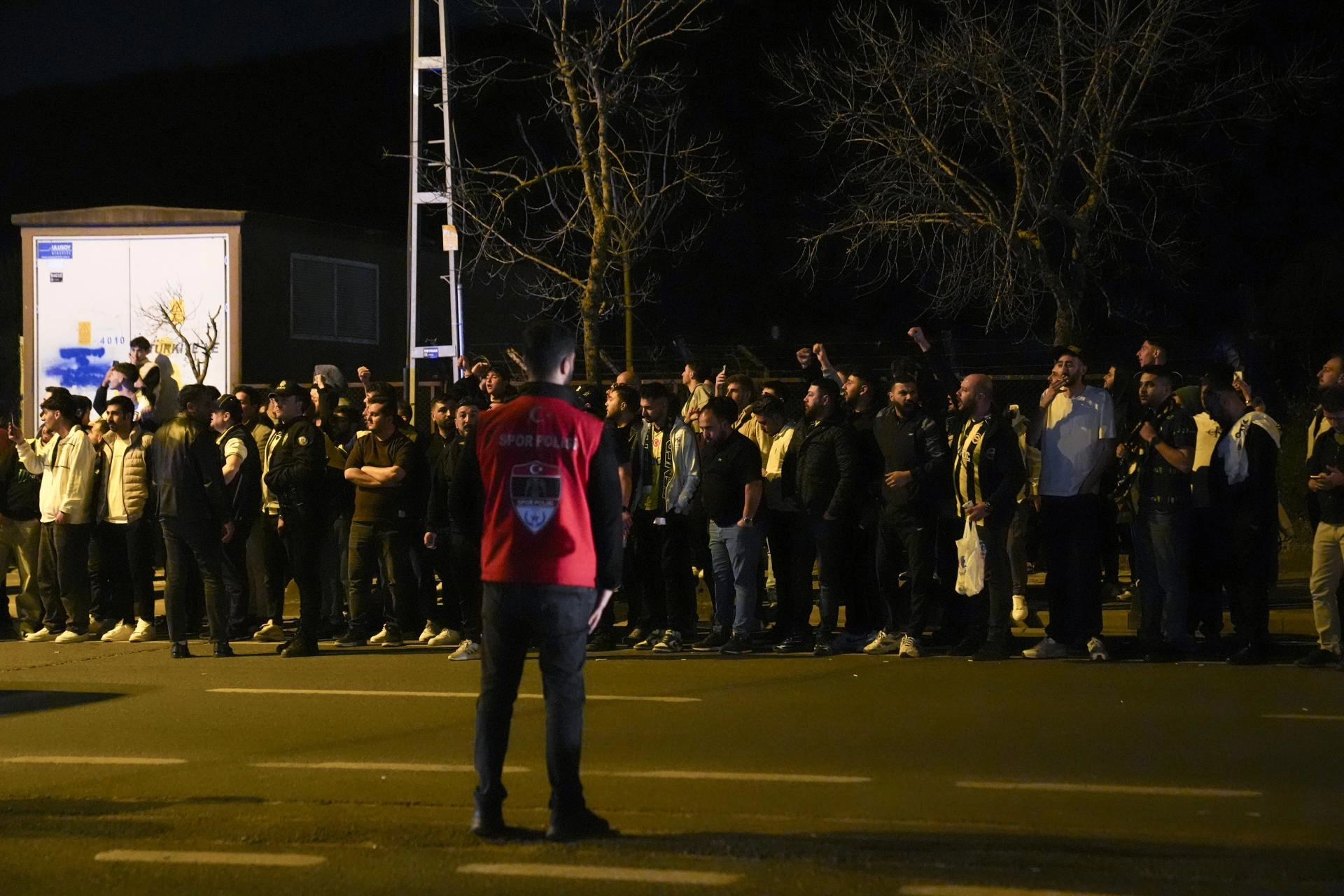 Yaklaşık 150 taraftar, derbinin sona ermesinin ardından Samandıra'daki Fenerbahçe Can Bartu Tesisleri'nin önünde sarı-lacivertli futbolcular ile teknik ekibin bulunduğu takım otobüsünü bekledi.