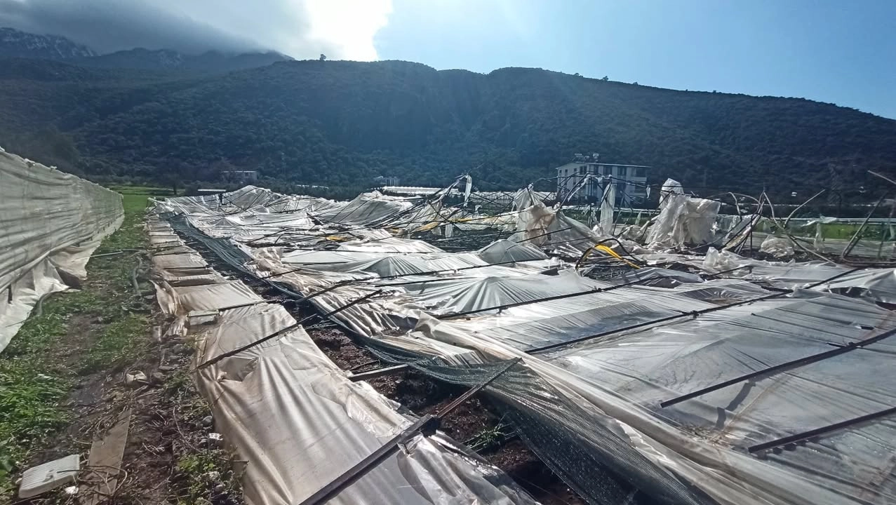 Bazı seraların örtüsü parçalanırken, bazılarının ise demir iskeleti zarar gördü.