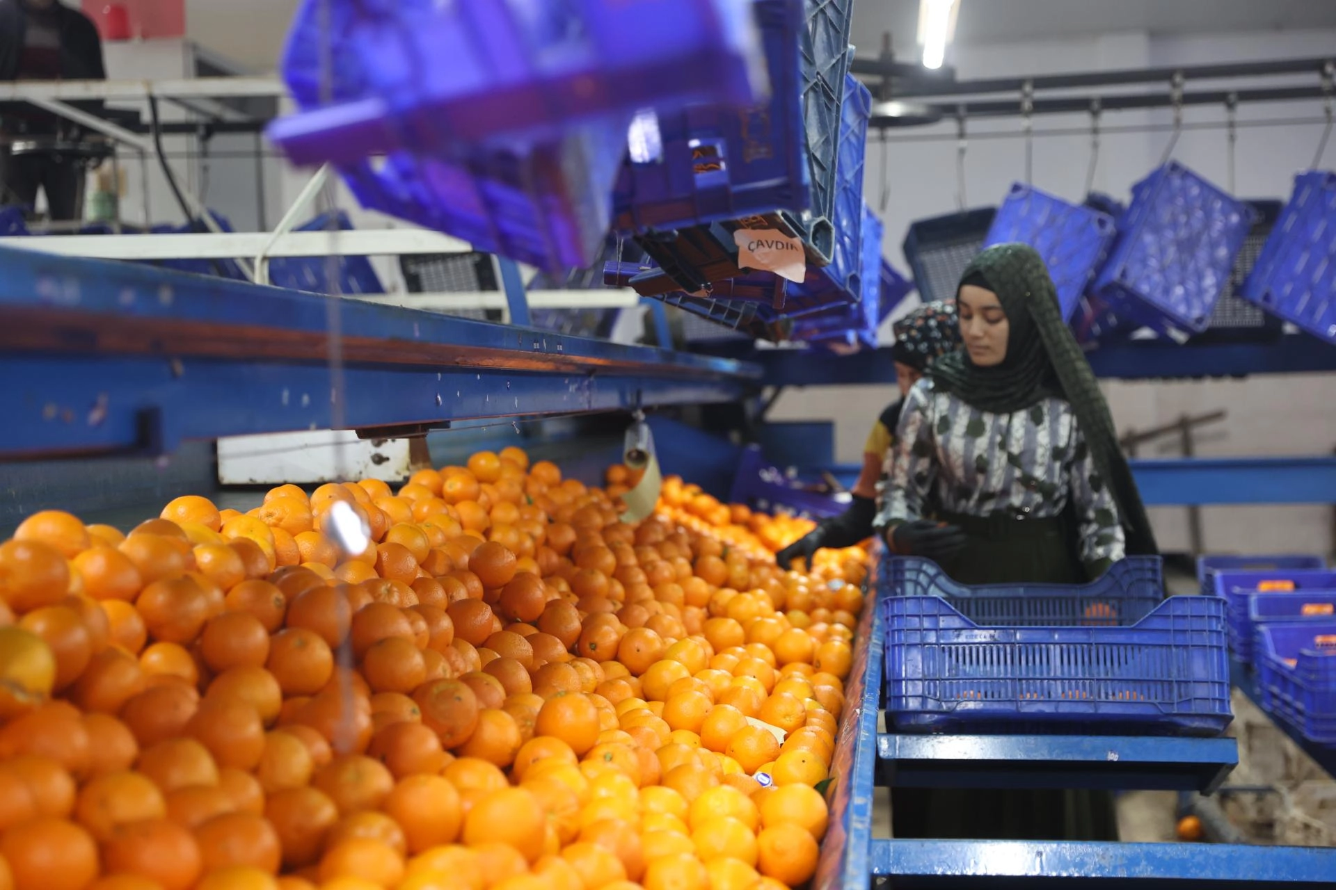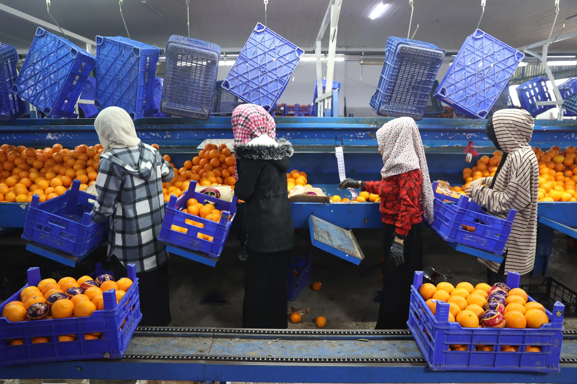 Portakal ihracatı yapan bir firmanın sahibi Salih Fettahoğlu da bahçelerden toplandıktan sonra kendilerine getirilen portakalların yıkandığını, boylandığını ve paketlendiğini ifade etti.