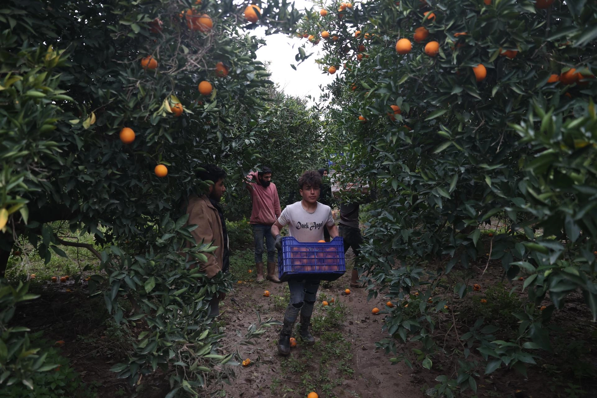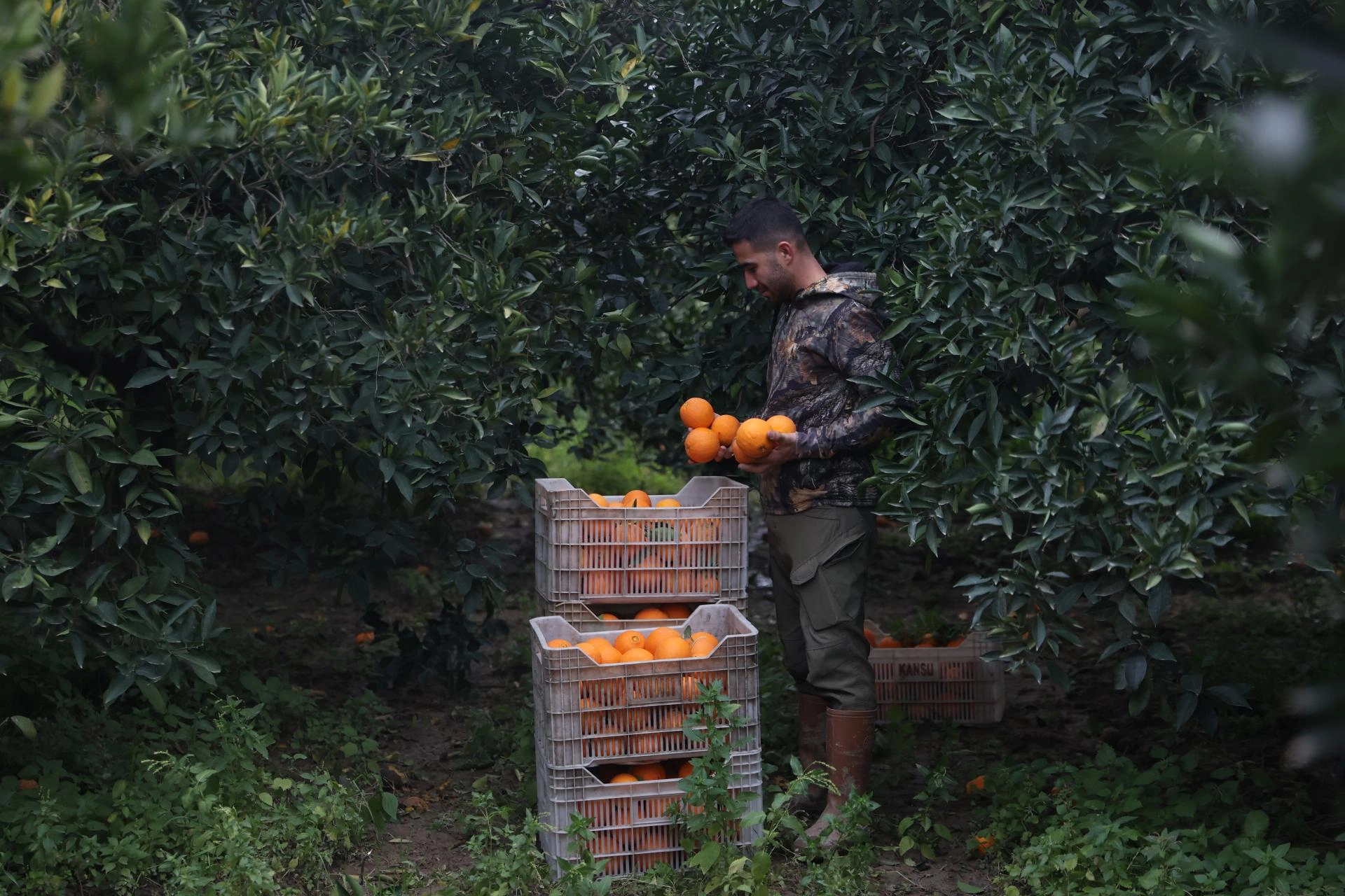 Çoğunlukla Washington Navel cinsi portakal üretiminin olduğu Finike ilçesindeki portakal bahçelerine sabahın erken saatlerinde gelen işçiler, son dönemlerde etkili olan sağanak ve fırtınaya rağmen günde ortalama 500 tondan fazla portakal topluyor.