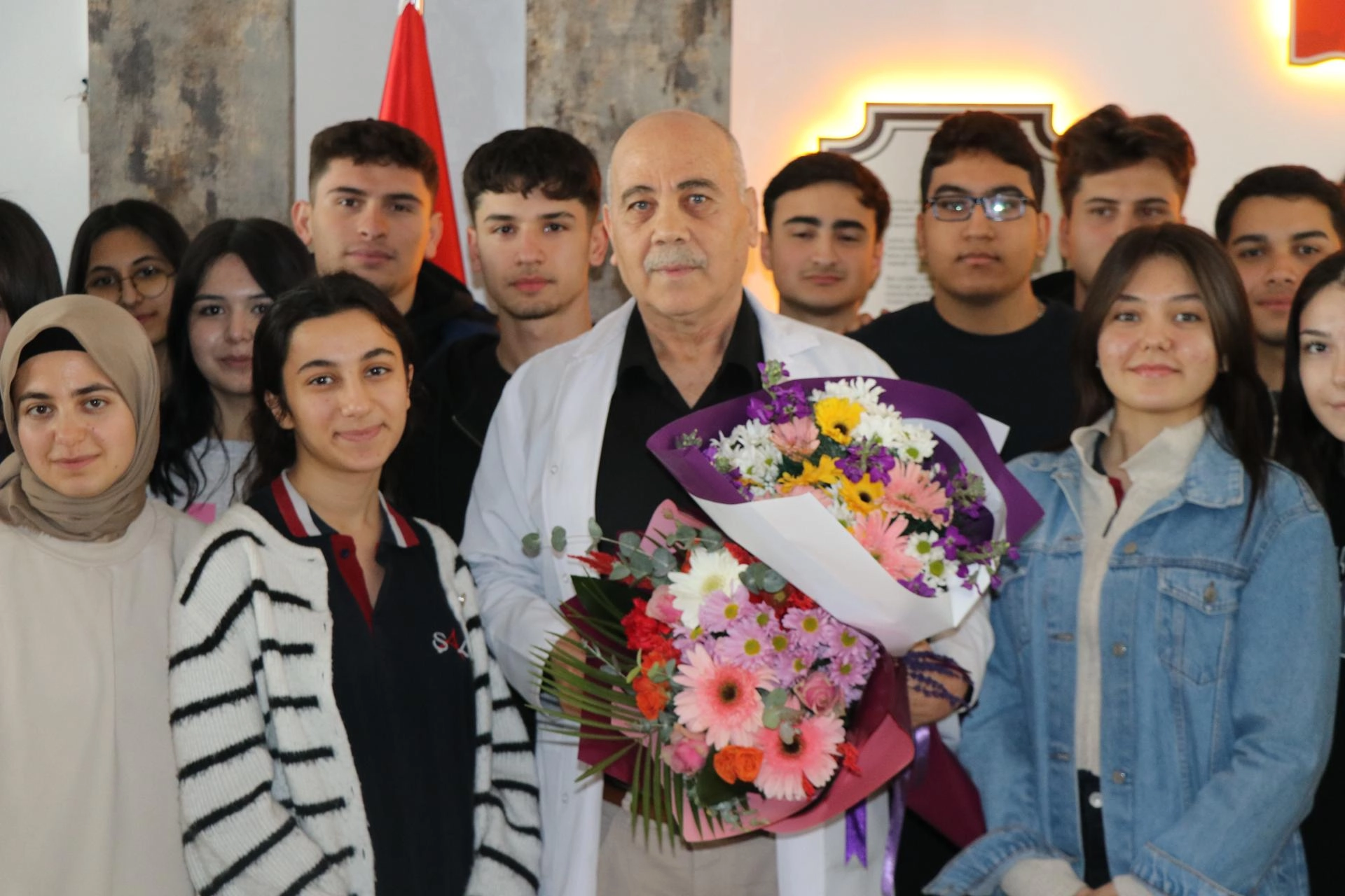 Öğrencileriyle ve meslektaşlarıyla hatıra fotoğrafı çektiren Kök, kucaklaşarak onlara veda etti.