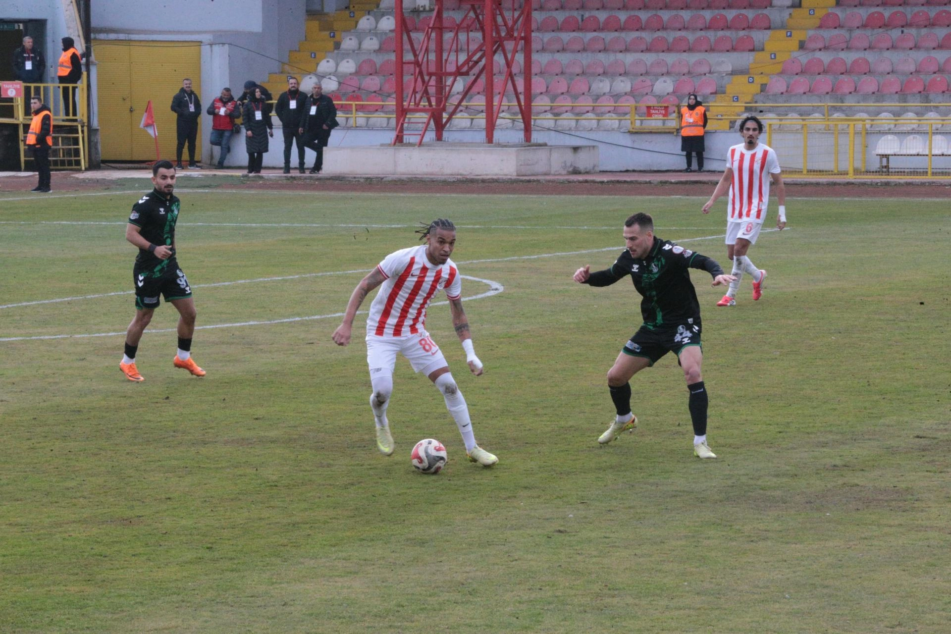 Karşılaşmanın sonlarına doğru Sakrasporlu iki taraftarın saha inerek Boluspor taraftarlarının olduğu alana doğru koşmaya başlamasının ardından güvenlik güçleri tarafından yakalandı.