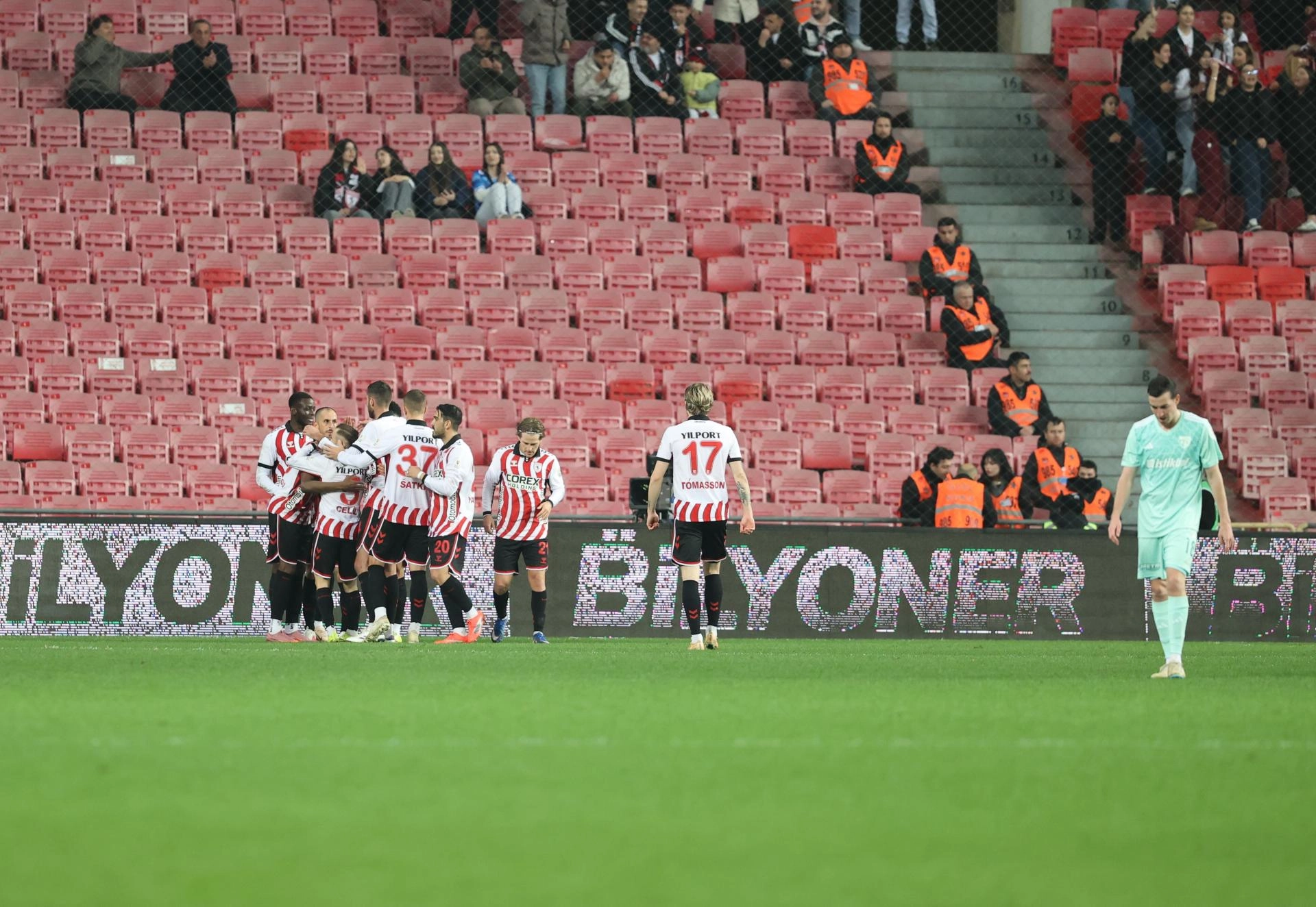 31. dakikada Samsunspor 1-0 öne geçti. Elayis Tavsan'ın sağ taraftan pasında arka direkte Makoumbou plase bir vuruşla topu ağlara gönderdi: 1-0